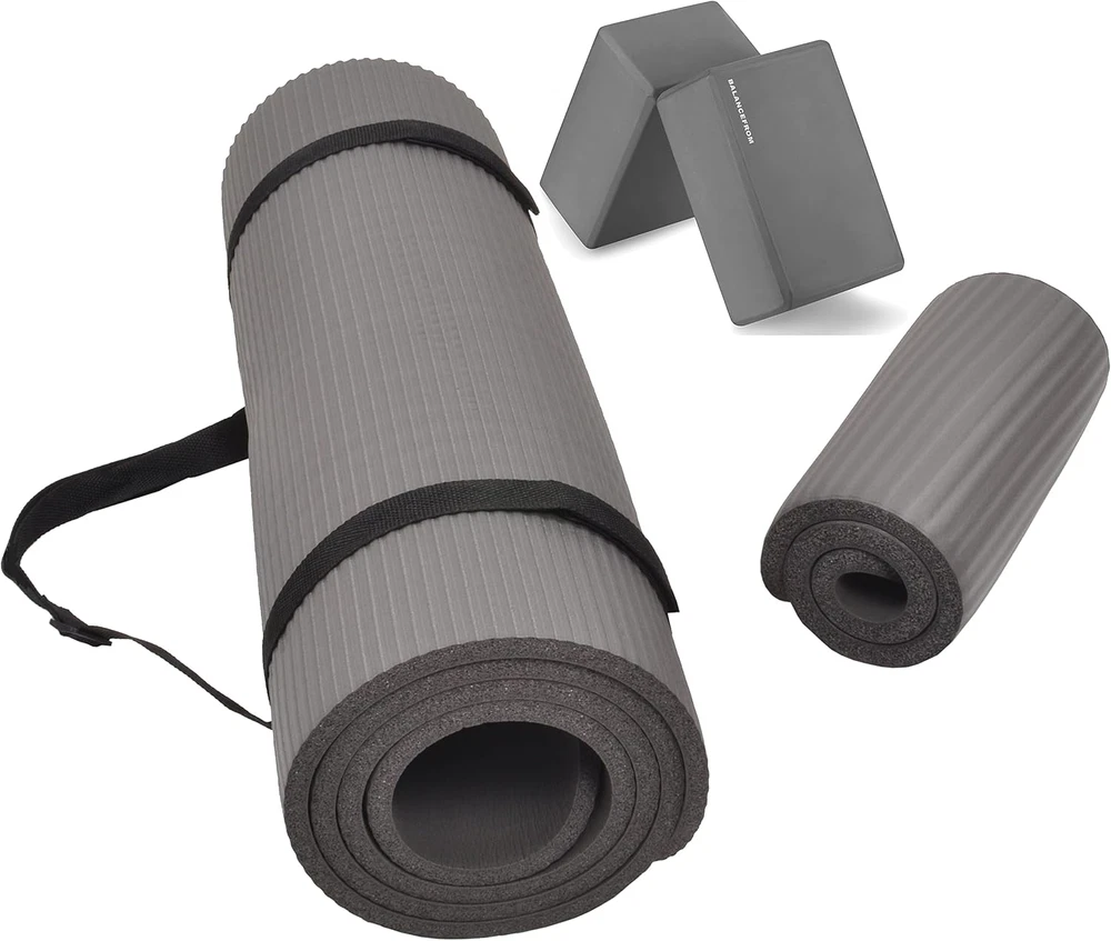 Easy strapping and light weight feature are added to this mat for easy Transport and storage. With double sided non-slip surfaces, all-purpose premium exercise yoga mat Comes with an excellent slip resistant advantage to prevent injuries; It also comfortably cushions spine, hips, Knees and elbows on hard floors. Exceptional resilience allow you to keep your balance during any exercise style; Moisture resistant technology makes the mat to be easily washed with soap and water. International products have separate terms, are sold from abroad and may differ from local products, including fit, age ratings, and language of product, labeling or instructions. Easy strapping and lightweight features are added to this mat for easy transport and storage. From the manufacturer Dimensions: Regular mat measures 71" long 24" wide , 1/2" thick, ensures comfort for people of all shapes and sizes. Knee pad measures 24" wide 10" long, 3/5" thick. With high density foam material, the 1/2'' thick premium mat comfortably cushions spine, hips, knees and elbows on hard floors. All Purpose 1/2-Inch Extra Thick High Density Anti Tear Exercise Yoga Mat and Knee Pad with Carrying Strap Comes with a regular mat and a knee pad. Regular mat measure 71" long 24" wide, 1/2" thick, ensures comfort for people of all shapes and sizes. Knee pad measures 24" wide 10" long, 3/5" thick. With double sided non-slip surfaces, BalanceFrom All-Purpose Premium exercise yoga mat comes with an excellent slip resistant advantage to prevent injuries. Comes with a regular mat and knee pad Excellent non-slip traction and cushion A free carrying strap is included Light weight and portable All Purpose 1/2-Inch Extra Thick High Density Anti Tear Exercise Yoga Mat and Knee Pad with Carrying Strap 1/2" Extra Thick With high density foam material, the 1/2'' thick premium mat comfortably cushions spine, hips, knees and elbows on hard floors. Super Easy to Clean Easy to clean. The moisture resistant technology and high quality material make mat to be easily washed with soap and water. Adjustable & Velcro A free strap is included. The length of our strap is adjustable. The loops have Velcro ends for easier and better hold. All Purpose 1/2-Inch Extra Thick High Density Anti Tear Exercise Yoga Mat and Knee Pad with Carrying Strap Dimensions 9"W x 6"H x 4"D ensures comfort for people of all shapes and sizes. Beveled edges Beveled edges and moisture proof material provide comfortable grip. Set of 2 Two blocks are suggested for more positioning options.