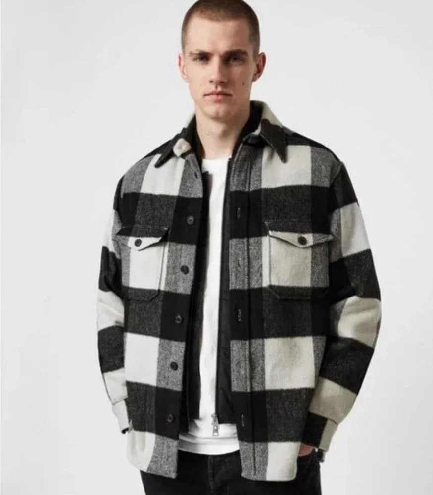 All Saints Mens Mosquero Buffalo Plaid Buttondown Overshirt Size L BRAND NEW