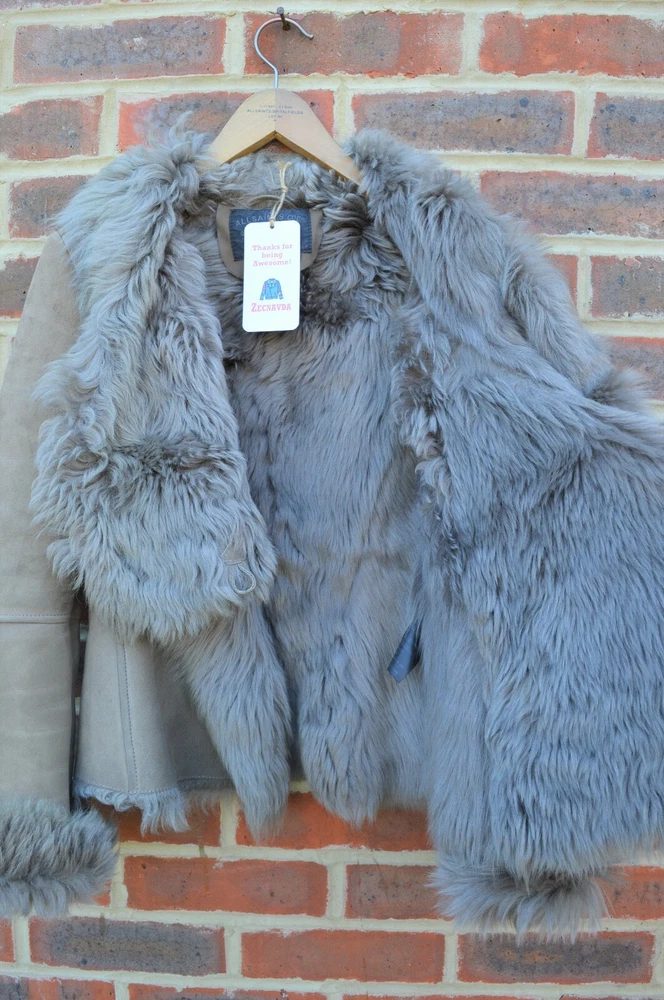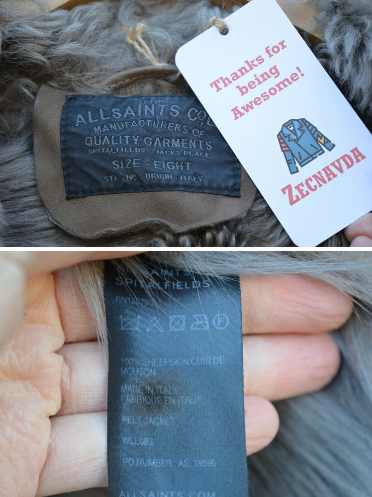 Untitled Document *STUNNING* AllSaints Spitalfields Ladies PELT Sheepskin shearling Jacket Colour: Brown/Grey (its the lighter version, not the darker "Doe" version) Material: 100% Sheepskin Size: UK8 EU36 US4 IT40 Pit to pit: 17.5" or 44.4cm Shoulder seam to shoulder seam: 15" or 38cm Shoulder seam to cuff hem (UNROLLED): 23" or 58.5cm Pit to cuff hem (UNROLLED): 18" or 45.7cm Front Length: 22" or 55.7cm Back Length: 19.5" or 49.5cm RRP: £795 Pictures are of actual item. For sale is an stunningly beautiful AllSaints Spitalfields ladies PELT Sheepskin shearling Jacket in size UK8 EU36 US4 IT40. Luxurious, long wool shearling jacket with garment washed contrast Italian pre shrunken sheepskin. The European sourced shearling on the front of the garment is square cut to create a cowling detail when the garment is fastened and a draped effect when worn open. The Pelt jacket fastens with signature AllSaints horn toggle fastenings and horn branded button. This style is fully lined.Sheepskin is a natural product so there will be variation in shade and texture, slight shedding will also occur with wear. This product is colour fast to the highest standard achievable in the dyeing process. Specialist Dry clean only. Staple for any AllSaints wardrobe! The item is in Good condition! Distressed marks as expected from a jacket of this colour and texture. Might come out with suede brush or professional dry clean, but looks fine without - see last pictures, ! Model is UK8-10, 5'1" height and it fits fine- perhaps slightly snug! Please check all measurements! BID WITH CONFIDENCE! 100% POSITIVE FEEDBACK! Please check my other auctions for more All Saints items as well as other designer clothing! PLEASE NOTE TO ALL BUYERS FROM EU COUNTRIES . THE UK IS NO LONGER PART OF THE EU – THERE WILL BE IMPORT / CUSTOMS FEES CHARGED AT THE POINT OF DELIVERY (INCLUDING REPUBLIC OF IRELAND)- PLEASE CHECK YOUR COUNTRIES CUSTOMS OFFICE INFORMATION FOR MORE DETAILS Customs Duty applies to the rest of the World as normal Payment Paypal Postage 1st Class £10.00 1st Class Recorded £11.00 Special Delivery £12.00 International Postage (Tracked) Europe £16.00 Rest of the World £27.00 Express Shipping available to USA/Canada (3-4 days) Tracking number for item will be provided once item is posted (if applies)