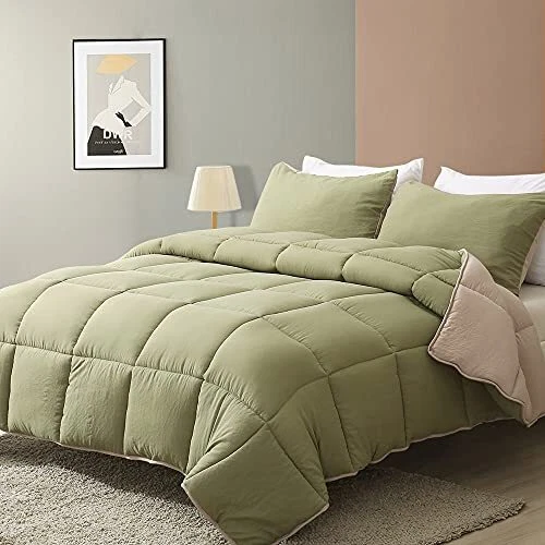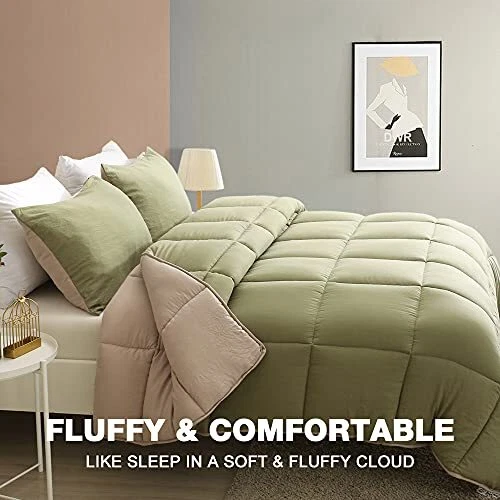 Return Policy Fast Delivery Trusted seller All Season Reversible Down Alternative Comforter - 3 Piece Ultra-Soft Air-Fluffy Breathable Eucalyptus Microfiber Comforter Duvet Set with Shams Queen, Moss Green/Light Brown) Product Description Efficient Moisture Transfer: Mixed microfiber enhances moisture and sweat transfer efficiency compared to standard fillers; provides a cool and breathable experience year-round, even for hot sleepers Ultra Soft & Breathable: Brushed peach-skin fabric offers superior softness and breathability compared to cotton; maintains a cozy temperature for comfortable sleep Valued Pack: Avaliale in Twin/Queen/King size; lightweight and breathable for versatile, all-season use Durable Construction: Features self-fabric hemming and box stitching to prevent filling leakage and clumping; corner tabs secure the comforter in place as a duvet insert Easy Care: Machine washable in cold water; tumble dry on low heat; ideal for those seeking a down alternative to goose-down feather duvets Shipping Returns Payment Shipping Shipping is FREE to all addresses other than APO/PO boxes in the lower 48 states. All our stock ships from US-based warehouses. Shipped via USPS or UPS (depending on location and package weight) Unless stated otherwise, all orders will ship within 24-72 hours of your payment being processed. Check our feedback to see the great reviews of FAST shipping we offer. Returns Seller does not accept returns Payment We currently accept payment via eBay managed payments only. Once payment is cleared, we will dispatch your shipment within 1-3 business days. Please refer to the "Shipping" tab for more information regarding shipping speed to your destination.