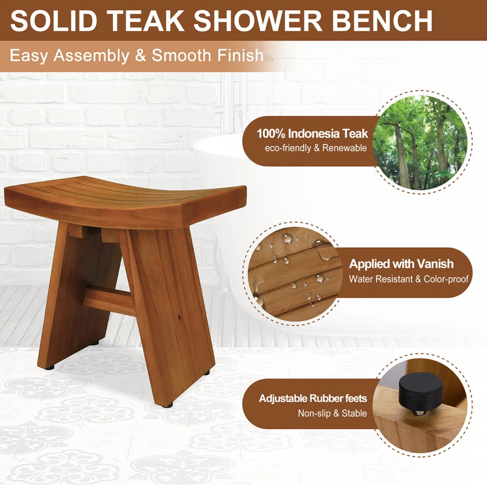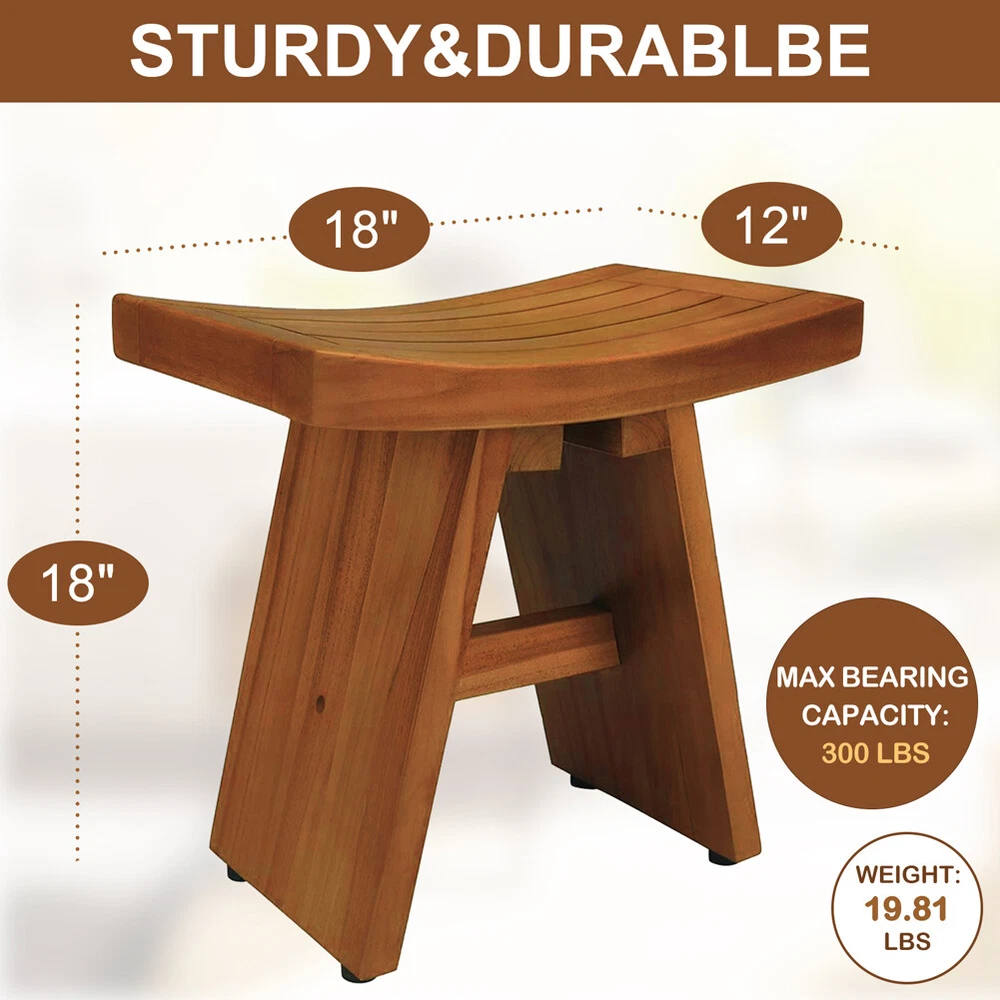 Store Categories Store Categories Home & Garden Blankets & Throws Pillows Shoe Organizers Access Ramps Mirrors Screens & Room Dividers Plant Stands Window Treatments & Hardware Slipcovers Door Mats & Floor Mats Message Boards & Holders Bookcases & Shelving Blanket Ladder Health & Beauty Shower & Bath Seats Toys & Hobbies Jigsaw Business & Industrial Dry Erase Boards Other All Teak Shower Bench Waterproof Spa Bath Seat Sauna Stool 330 lbs for Bathroom Product Description Description: Indonesia Legal Wood : Our 100% Solid Teak wood is certificated from the Ministry of Forestry of Indonesia. Due to its density, h ardness and high oil content, teak naturally withstands water and humidity. Therefore, teak is superior to bamboo, which is a softer w ood and has no oil content. Durable, environment-friendly and healthy material, let you enjoy your shower time. Multi-function : Natural waterproof teak material and stainless steel screws make the shower bench available for both indoor and outdoor use, such as bathroom, living room, bedroom, porch, Patio, garden, etc. Non-Slip & Adjustable : The rubber foot pads provide an non-slip stable surface for extra stability. The foot leveler pads allow independent adjustment of each leg to make minor adjustments for slight slopes in shower floors. Storage Space : The corner seat provides more storage space and a full seating surface, wide enough and sturdy enough to be a fully functional and comfortable seating shower bench or foot stool. Sturdy & Stable : This product supports a stable structure, features an amazing ergonomic design, and a patented two-step coating process that provides additional strength, making the shower stool very strong and safe. Solid wood material and unique structure make it can hold up to 300 lb s and have very long service life. Exquisite Design : Round corners, smoothly polished edges and surface without burrs protect your body from being hurt. Features Material: Teak Wood Furniture Finish: Wood Size: 18.5" x 12" x 18" (L x W x H) Suit for: Our shower bench can be used as a regular stool in a bath, garden, balcony, patio, or living room. It can also be used as a seat or small table in any room if you need it. It provides convenient storage for toiletries, towels, shoes, and more, both practical and decorative. Package 1 PC Solid Teak Shower Bench Payment Policy Shipping Policy Returns Policy Feedback Payment Policy 1.We accept PayPal only 2.All payments must be received within 10 days after auction won 3.Non-pay bidder will get a negative feedback and an unpaid alert from eBay 4.E-checks via Paypal will be hold until it is cleared Shipping Policy Free Shipping within the 48 States. We ship within the United States only. The term EXCLUDES the states of Alaska, Hawaii and all off-shore U.S. territories and possessions such as Puerto Rico, Guam and Virgin Islands. We do not ship to APO and FPO. Delivery Time: 3-8 business days (Varies by Destination) Shipping Carriers are responsible on the delivery time. If you have any questions or problems with delivery, please contact carrier directly. Standard Order Processing time: All items will ship within 3 working days (Monday - Friday). Payment cleared/received on Friday will be shipped on the next business days (Monday or Tuesday). We are not responsible for carrier transit time. This information is provided by the carrier and excludes weekends and holidays. Note that transit times may vary, particularly during peak periods or in climate weather conditions, and that delivery times frames will need to be extended for any processing time frames in excess of 1-2 business days. Returns Policy You can return a product for up to 30 days from the date you purchased it. Any product you return must be in the same condition you received it and in the original packaging. Please keep the receipt. Feedback Customer satisfaction is very important to us. If you have any problem with your order, please contact us and we will do our best to make you satisfied. If you have any queries, please contact us via ebay. We usually respond within 24 hours on weekdays. Copyright © 2023 Dianxiaomi