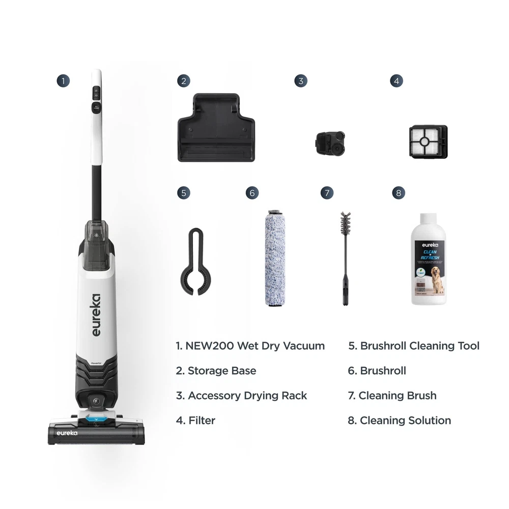 SAVES TIME AND EFFORT : new200 all in one vacuum mop that vacuums up debris and washes at the same time, giving your hard floors a new look. Ultra motor power: 450w. A good solution for household hard floor cleaning POWERFUL PICK-UP & CONVENIENT USE: All in One Powerhouse that combines the deep cleaning benefits of a traditional upright vacuum, sucking up debris and embedded dirt, with the refreshing clean of a mop to remove sticky and stuck debris. With NEW200 corded wet dry vacuum mop, you can really enjoy a truely clean home. TWO TANK SYSTEM: Clean water tank:800ml, Dirty water tank: 420ml. ’s two-tank system means you are always cleaning with fresh water, while dirty water and debris are collected in a separate tank, allows for one-time cleaning of the house without changing the water during the cleaning process. LIGHTWEIGHT DESIGN & SWIVEL STEERING: Easily maneuver around furniture, along cabinets and into corners that are often missed thanks to swivel steering and optimized design, to ensure you can deliver a complete cleaning to every nook and cranny with this vacuum mop. MULTI-FLOOR CLEANING & SELF-CLEANING: Easily switch between cleaning hard floors and area rugs, control your cleaning with an on-demand solution trigger. Set the upright vacuum mop on the storage tray, and push the Self Clean button, The rolling brush will be self-cleaned without making your hands dirty.