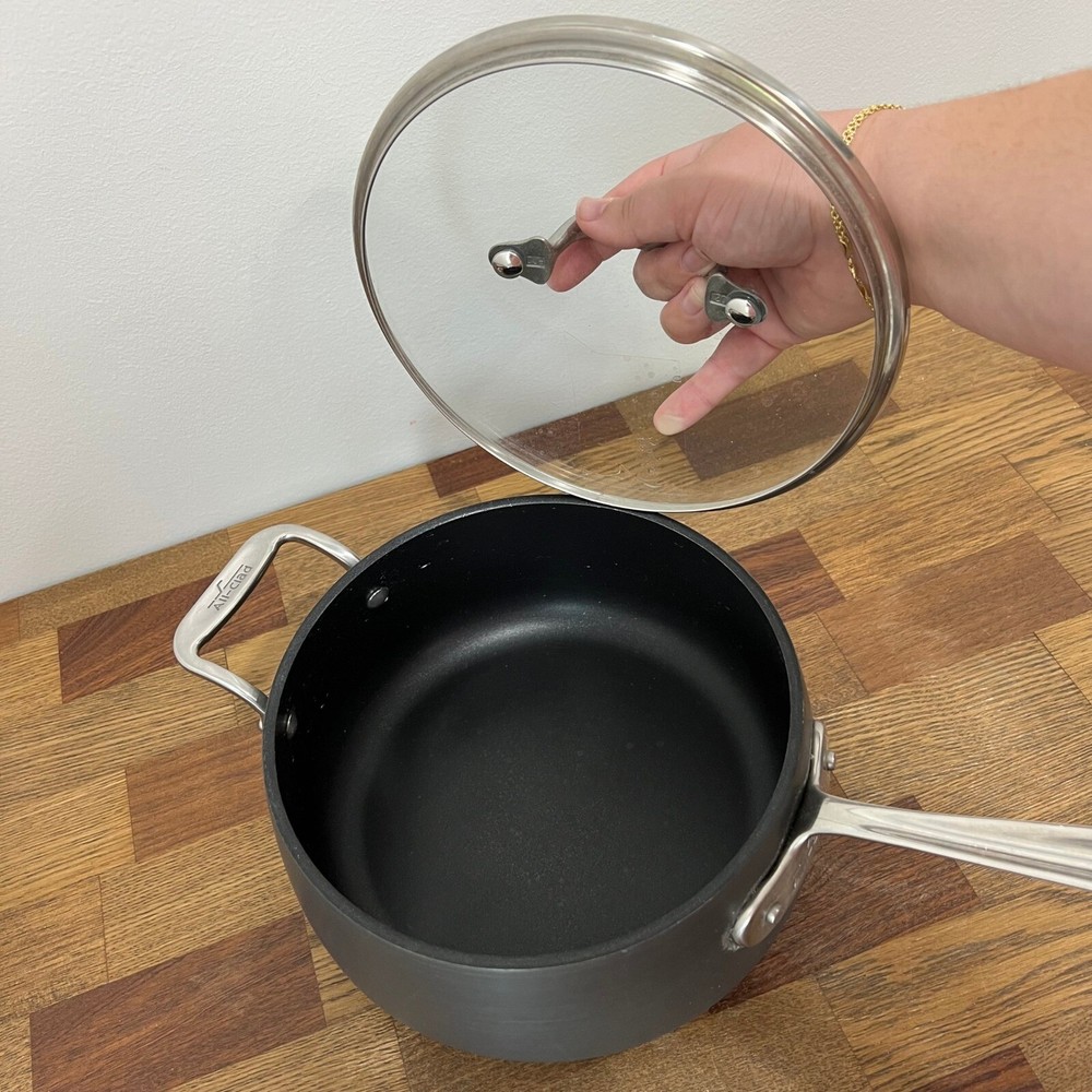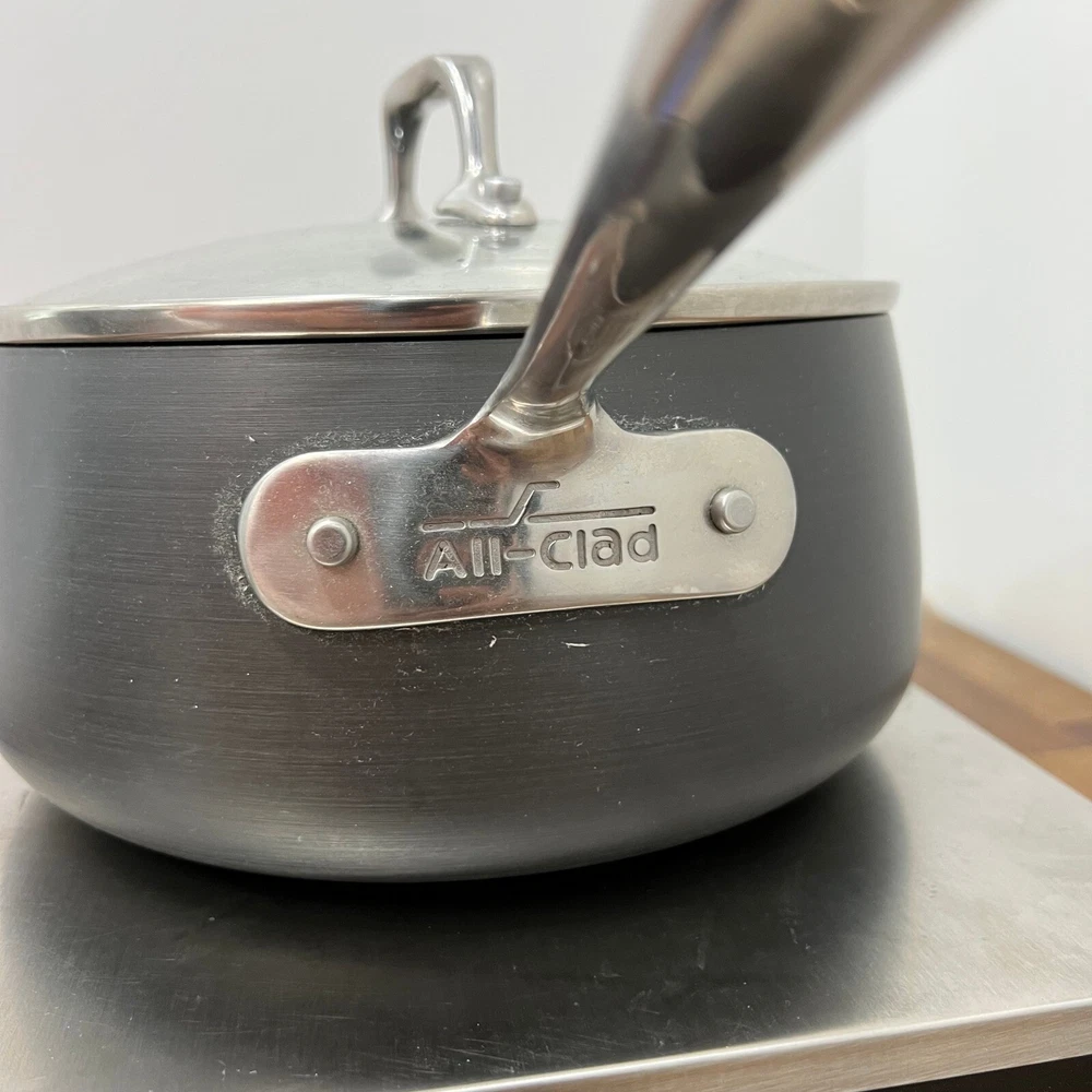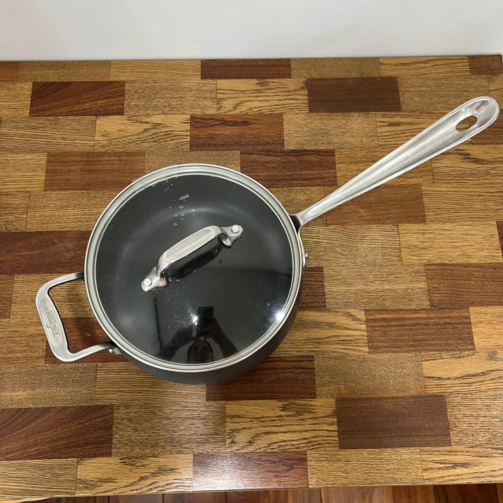 All-Clad HA1 Hard Anodized Nonstick Sauce Pan 3.5 Quart w/ Glass Lid Induction Good preowned condition Lid and pot