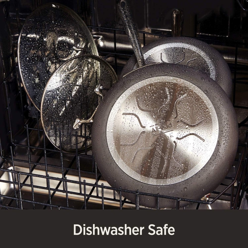 All-Clad HA1 Hard Anodized Nonstick Glass Lid Set 10, 12 Inch Pots and Black Product Details Material: Aluminum Color: Black Brand: All-Clad Style: Pan Product Dimensions: 12.2"L x 12.2"W Shape: Round Number of Pieces: 2 Is Dishwasher Safe: Yes Closure Type: Snap Is Microwaveable: Yes Global Trade Identification Number: 00011644912062 Manufacturer: All-Clad UPC: 011644912062 Item Weight: 4.62 pounds Country of Origin: China Item model number: 2100101613 Designed to fit All-Clad 10-inch fry pan and 12-Inch fry pan (E7859064), 4-quart Saute Pan (E7853364), 12-Inch fry pan (E7859664) Transparent glass for Clear viewing Dishwasher safe and durable Superior construction Durable riveted handle Elevate your cooking experience with these All-Clad HA1 Glass Lids, designed to fit perfectly on your 10-inch and 12-inch skillets, as well as the 4-quart saute pan. Crafted with tempered glass, these lids allow you to monitor your food effortlessly, while the stainless steel rims ensure a snug fit, locking in heat and moisture for delicious results. Durable and dishwasher safe, these lids are heat resistant up to 500F, making them ideal for various cooking methods. Upgrade your cookware collection with these versatile and high-quality glass lids.