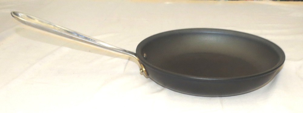 All-Clad Metalcrafters 10 inch Non-stick Skillet Fry Frying Pan -------------------------------------------------------------------- We try to declare all issues. Any white spots in the pictures that have not been mentioned are more than likely glare from the camera flash, but if you have any doubts, please don't hesitate to ask. Please look at our other auctions, and especially our ebay store items, and save on shipping with multiple wins Please email us with any questions. Honest Shipping : We do not insult your intelligence by hiding the shipping costs in the price of our items, and then offering "free" shipping - trying to fool you into thinking that we are absorbing the shipping costs. What nonsense! Our shipping costs are based on an estimate of the shipper's rates, ebay shipping fees, plus a small handling charge. If you can find the same item with a cheaper total cost - purchase price plus shipping - anywhere on the web - please contact us. We cannot guarantee to beat it (because of distance-based shipping), but will give it our best shot. Please be sure that you understand, and are comfortable with, the total costs before making your purchase. If you have any questions - please ask first. Combined Shipping: We always offer combined shipping for multiple purchases. Please add your purchases to your ebay "cart". When you have completed your purchases, (either multiple items from a single listing, or items from two or more listings), please contact us, using the "Requests total from seller" button, and we will generate a final combined-shipping invoice.. Note: You will possibly receive an earlier invoice (or invoices) generated automatically by ebay. These are accurate for single item purchases, but often inaccurate for multiple items, due to limitations with ebay's shipping calculator. Our combined shipping invoice will include a note stating that it reflects combined shipping. If you have any doubts - just ask. Shipping Methods: Unless otherwise noted, for each item we offer three forms of shipping: 1. personal pick-up: You can meet us in San Jose, CA - with zero shipping charges. 2. One of: expedited USPS First Class Mail if the package qualifies, or economy USPS Media Mail if the package qualifies, or economy USPS Parcel Post. 3. expedited USPS Priority Express Mail We are always willing to at least consider any other valid shipping method - just ask. If the costs allow it, we will promote your package to a faster service where we can, at no additional charge to you. If shipping is not to a USA contiguous 48 state street address, or you request a faster or other shipping method, such as UPS Air, or Express Mail, then shipping costs may vary. Please allow at least 14 business days for delivery to the contiguous 48 USA states. Media Mail typically takes longer. More specific estimates are available on the USPS web site. For AK and HI , USPS Priority Mail should take 4 days or fewer, but USPS offers no time estimates for Parcel Post. Books, other printed matter, and media: We typically ship books, CDs, videos, and the like by Media Mail. This can be considerably slower than other services. If you need your book quickly, please let us know, and we will re-quote the shipping, typically at a higher cost. International Buyers - Please note: International mail is often slower than the estimates available on the USPS web site, so customers should allow a minimum of 14 days for airmail delivery - longer if your parcel is held in incoming customs. USPS no longer offers any international surface mail, or M-bag service. Air Mail is the only remaining option for international shipments. International buyers should double-check for mailing costs before bidding. Also: Import duties, taxes and charges are not included in the item price or shipping charges. These charges are the buyer's responsibility, so please check with your country's customs office to determine what these additional costs will be prior to bidding/buying. Additional charges are sometimes collected by the delivering freight (shipping) company on delivery or pick-up - do not confuse them with additional shipping charges. We do not mark merchandise with lower values, or mark items as "gifts" - US and International government regulations prohibit such behaviour. Questions. Please email us with any questions: If you have any questions, please ask at least 24 hours before end of auction as we have other commitments that require our attention, and are not always at the computer. We pack with care but after your parcel is delivered to the carrier we have no control over delivery times. Please ask all questions before bidding. Returns. Unless otherwise noted, we always accept returns - for any reason. The item must be returned within 30 days with all original packaging . The purchase price will be refunded when the item is returned in the same condition as it was shipped . If there is a relevant error in the listing description, we will also refund shipping in both directions. Problems & Issues. Please always contact us with any problems before leaving any feedback or DSRs. We will always do everything we can to resolve any issue. Once feedback has been left it cannot be changed, and we cannot guarantee to resolve your problems. Feedback: **We always work to earn 5-star feedback from you. If you have any concerns about this transaction, please contact us, preferably before bidding, but definitely before leaving feedback, so that we can do everything possible to resolve the issue.** If the transaction has gone well Positive feedback and 5-star DSRs - for each item, if you have bought more than one - is appreciated. Payment Method: For shipped purchases, all major credit card payments through Paypal. We cannot accept credit card payments directly. Payment Timing: Unless negotiated before the purchase is made, payment must be received within seven days of the listing's close. All non-paying bidders will be reported to Ebay. Wherever poss