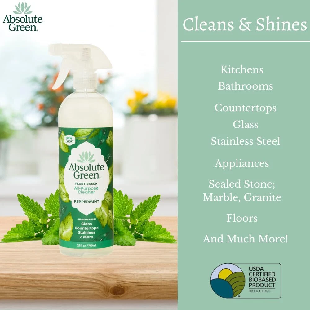 Keep your home clean without the worry of harmful chemicals being breathed in by you or your with the All Purpose Cleaner Peppermint from . provides products that really work, smell great, and have no harmful chemicals or artificial fragrances. Made from 100% natural ingredients and pure essential oils, they've created safe and all-natural solutions for you, your family, your pets, and our earth. NATURAL INGREDIENTS. 100% natural ingredients with pure peppermint essential oil. Plant-based, biodegradable and vegan. *Contains no vinegar which dulls and etches stone counters and hardwood floors* SAFE, HEALTHY HOME. -Free, Botanical cleaner that is safe to use around chemically sensitive people, your family, , and pets too!, EFFECTIVE. Cleans and cuts everyday grease and grime on Kitchen + Bathroom surfaces, USES: Countertops, Stainless Steel, Sealed Stone (granite, marble), Appliances, Glass, Sinks, Showers, Tubs, Mirrors, Windows, tiles, pet areas, cars and so much more! FRESH SCENT. 100% Pure + Natural Peppermint Essential Oil. Cleaning Vibe: cool breeze, a fresh mint sprig, peppermint patty on a ski slope :) CERTIFIED: Bio-Based, Cruelty-Free + Vegan, WBENC (Woman-Owned), Small Business, Made in USA NEW HIGH QUALITY SPRAYERS: Sturdy sprayers with mist, stream and a locking feature. Turn the sprayer head for your choice.