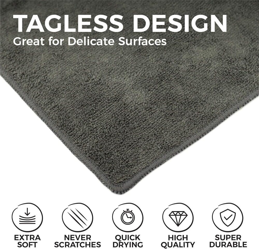 - All-Purpose Microfiber Terry Cleaning Towels - Commercial Grade, Highly Absorbent, Lint-Free, Streak-Free, Kitchens, Bathrooms, Offices, 300gsm, 16in x 16in, Grey (12-Pack) Microfiber,terry All-Purpose Microfiber Cleaning Towels with Over 200,000 Fibers Per Square Inch. Use Wherever Dust, Dirt, and Liquids Need to be Quickly, Easily & Safely Eliminated. Also Available in 12”x12”, 14"x14" and 16”x16” Sizes From THE RAG COMPANY. 80% Polyester/20% Polyamide Blend - Proven Softer, More Absorbent, Lint-Free, and Scratch-Free. Can be used in the home, office, garage, or for industrial cleaning. Extremely durable towels have a proven ability to withstand hundreds of washes with proper care, getting softer with each wash. Proven success in hotels, garages, car washes, housekeeping, and industrial applications while also being effective and safe at home. AMERICA’S PREMIER CAR DETAIL PRODUCTS - Since 1999, The Rag Company has been committed to making the highest quality microfiber and car detailing products available. Always the better value! Product Description All-Purpose Terry Comparison Table Super Absorbent 80/20 Softness Blend 70/30 All-Purpose Best For All-Purpose 12 Quantity 80 16" x 16" Size 12" x 12" Color Options Size Options Super Absorbent 80/20 Softness Blend 80/20 All-Purpose Best For Windows 12 Quantity 3 16" x 16" Size 16" x 16" Color Options Size Options Super Absorbent 80/20 Softness Blend 70/30 All-Purpose Best For Detailing 12 Quantity 4 16" x 16" Size 16" x 16" Color Options Size Options Super Absorbent 80/20 Softness Blend 70/30 All-Purpose Best For All-Purpose 12 Quantity 10 16" x 16" Size 16" x 16" Color Options Size Options Rip N' Rag Standard Waffle Weave Eagle Edgeless 500 Edgeless 365 Item model number TRC-APT-GRA Color Grey Product Dimensions 16"L x 16"W Material Microfiber - 80% Polyester / 20% Polyamide (Premium AA-Grade) Towel form type Bath Towel Is Discontinued By Manufacturer No 16.0 "w x 16.0 "w. Shipping from the USA All of our products are shipped from the USA, ensuring quick delivery to your destination. Payment We offer the following payment methods: PayPal, credit card, bank transfer, and eBay's secure payment system. Free Shipping & Free Returns Shipping within the USA is FREE. Additionally, any return is absolutely free for you. Risk-Free Purchase You have the option to return an item within 30 days without any justification. We cover the return shipping costs! Fast Shipping We ship immediately upon receipt of payment. Generally, the package is delivered within 2-3 days in the USA. If it takes longer, we will contact you. Quality and Costs Made in Europe, USA, China No customs fees or additional charges Total satisfaction guarantee Invoice with declared VAT available upon request in .pdf format Feedback Your feedback is very important to us. After you pay for your purchase, you will automatically receive positive feedback from us.