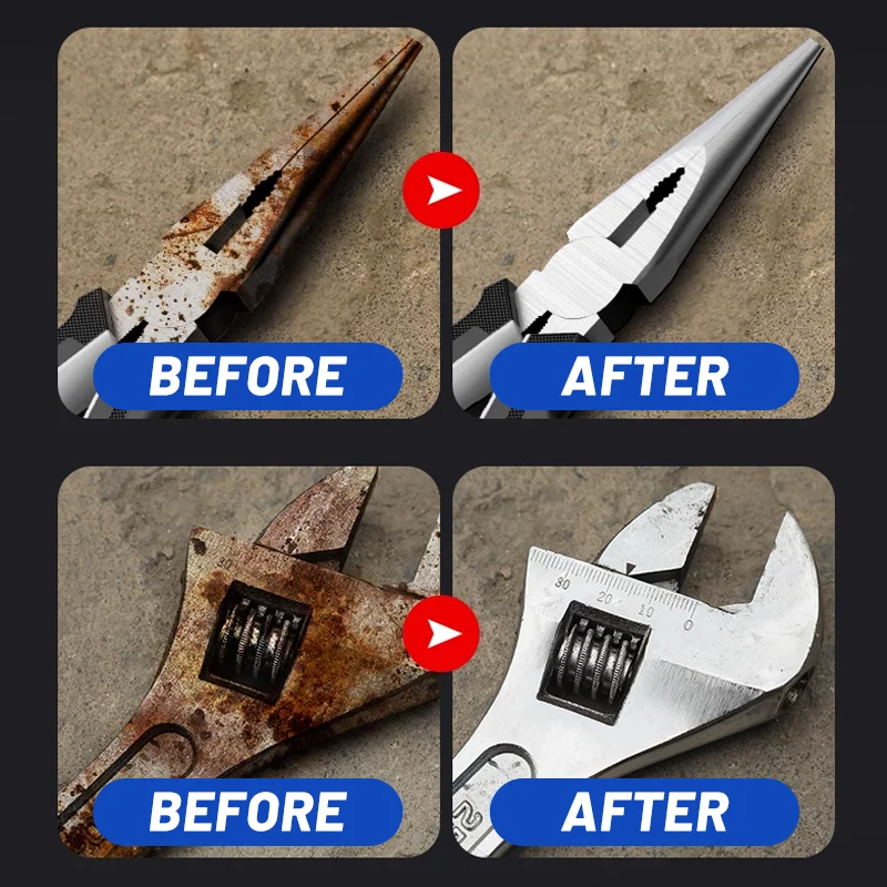 Versatile Surface Compatibility This rust converter is safe for use on various surfaces, making it a versatile choice for home and industrial use. Rust Prevention In addition to removing rust, this spray also acts as a rust prevention agent, offering long-lasting protection. Fast-Acting Formula The KJM All-Purpose Rust Remover Spray boasts a fast-acting formula that quickly eliminates iron oxidation, restoring shine to surfaces. Convenient Size With its 120ML size, this rust remover is easy to handle and carry around, perfect for on-the-go use. Rust Converter, Rust Remover & Rust Prevention