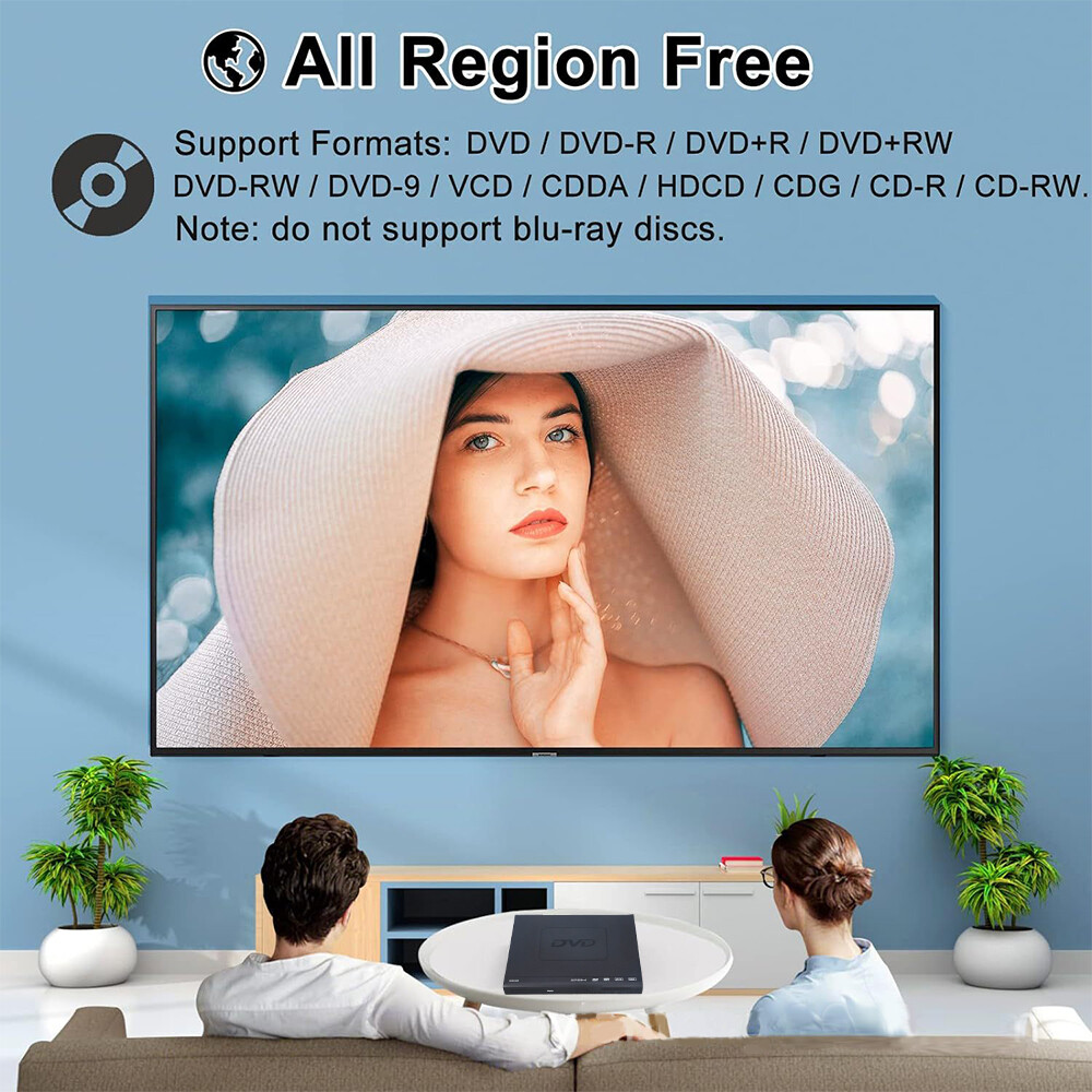 Features: ✅UNPARALLELED 1080P HDMI VIDEO: Seamlessly connects to your smart TV, monitor, or projector via HDMI and AV cables (included). ✅REGION-FREE, UNIVERSAL COMPATIBILITY: Our robust HDMI DVD player offers extensive compatibility with a wide array of media devices. This multi-region DVD player effortlessly handles DVD、SVCD、VCD、CD-R and CD-R/W formats. ✅FAST, LCD DISPLAY, LOW-NOISE: Boasting lightning-fast loading speeds, top-tier reading capabilities, convenient memory playback, a vibrant LCD screen, and remarkably quiet operation. ✅USB, RCA, REMOTE: Our DVD player includes RCA AV cables and a USB port for versatile media playback. Specification: * Name: DVD Player * Power supply: AC 110-240V 50/60Hz * Power Consumption: ≤15W * Compatible disc format: DVD, SVCD, VCD, CD-R, CD-R/W * Colour: Black * Item size: 22.3*19.0*4.2cm/8.78*7.48*1.65in * Item weight: 671g/23.66oz * Package size: 24.3*23.5*5.0cm Package Includes: 1*DVD player 1*3in1 AV cable 1*Remote Control 1*User's Manual On Jul 5, 2024 at 08:08:20 PDT, seller added the following information: On Jul 7, 2024 at 08:51:17 PDT, seller added the following information: On Dec 5, 2024 at 18:41:52 PST, seller added the following information: On May 13, 2025 at 02:30:28 PDT, seller added the following information: On Jul 10, 2025 at 17:48:10 PDT, seller added the following information: On Jul 15, 2025 at 17:46:24 PDT, seller added the following information:
