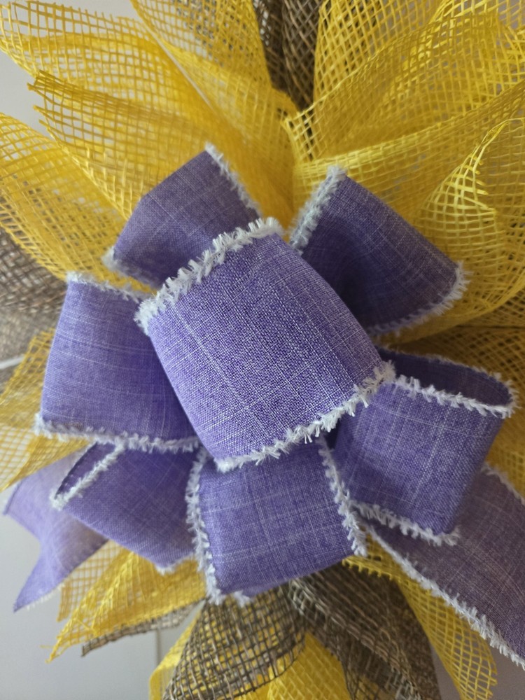 This wreath is absolutely stunning! The taupe, yellow, and lavender colors blend beautifully, making it perfect for any season or occasion. The craftsmanship is top-notch—love that the mesh was carefully cut to prevent fraying. At 25 inches tall, it’s the perfect size to make a statement without being overwhelming. The handmade details and religious theme give it such heartfelt charm. Highly recommend for adding warmth and elegance to any home!