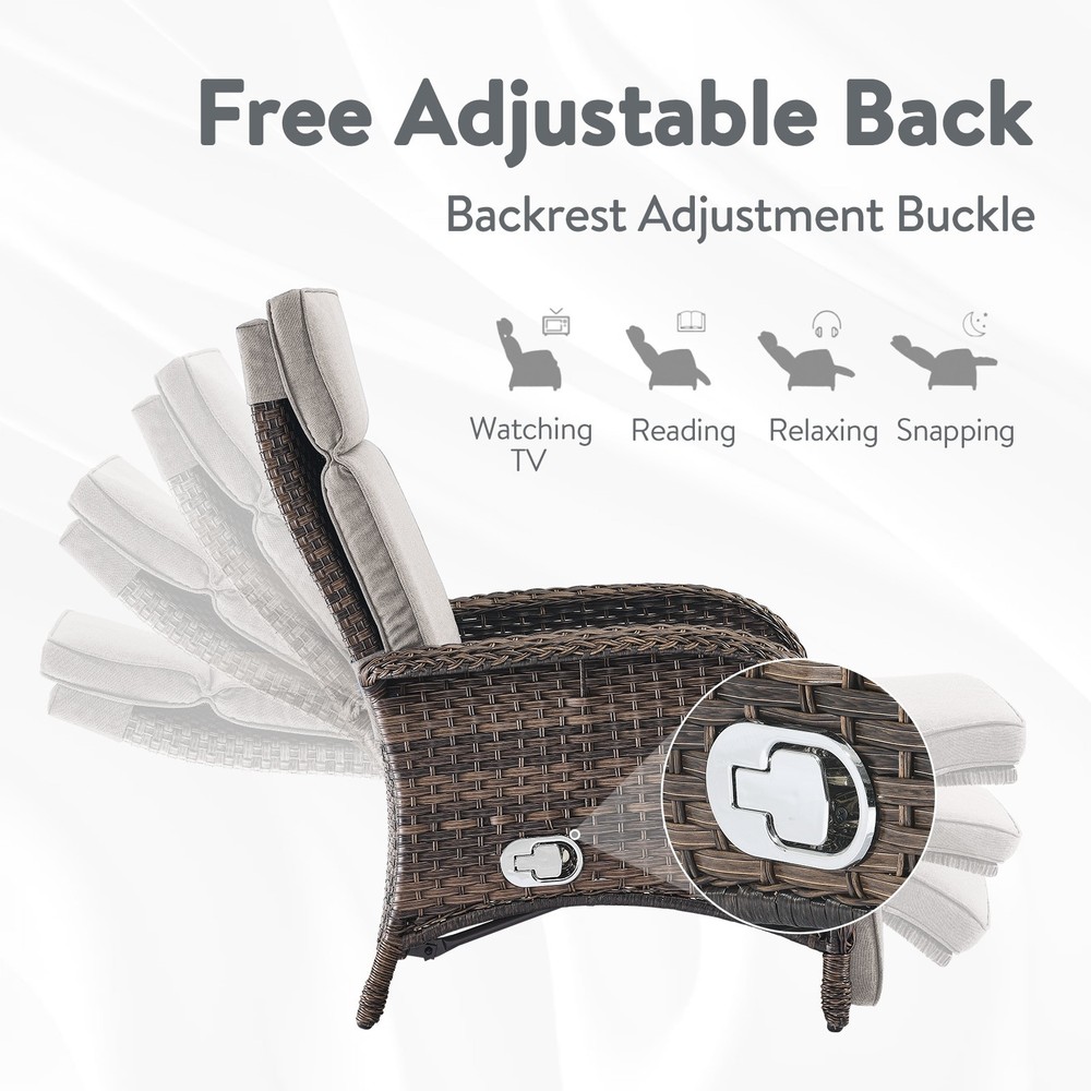 1. This patio recliner is a game-changer—super versatile with three adjustable positions for ultimate comfort. The all-weather wicker is sturdy yet stylish, and the thick cushions make lounging feel like a dream. Perfect for relaxing outdoors in any season!
