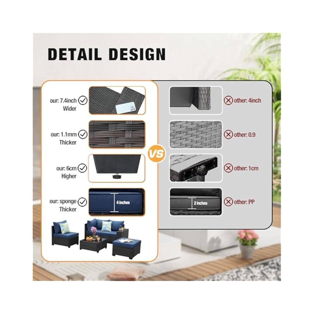 STORE NEW ARRIVALS ADD TO FAVORITE VIEW FEEDBACK All,Weather Wicker Sofa Set, 5 Piece Patio Sectional with Cushions, Navy Description All-Weather Outdoor Patio Furniture Set – Create Lasting Family Memories! This 5-piece patio furniture set provides a comfortable and inviting space for your family to relax and connect outdoors. Crafted with durable, all-weather wicker, this sectional conversation sofa is designed to withstand the elements, ensuring years of enjoyment. The set includes comfortable cushions, a convenient glass table, and an ottoman for added relaxation. Perfect for porches, poolside areas, or any outdoor space where you want to create lasting family memories. Enjoy quality time together in a stylish and comfortable setting. This set offers a reliable and value-packed solution for your outdoor living needs, providing a welcoming space for family gatherings and peaceful moments. It’s an investment in family well-being and creating a home you’ll cherish. Experience enhanced comfort and durability, making it ideal for everyday use and special occasions. Product Features Durable, all-weather wicker construction Comfortable cushions for relaxed seating Convenient glass table included Ottoman for added relaxation Ideal for porches, poolside areas, and outdoor spaces Designed for lasting family memories Reliable and value-packed solution Technical Specifications Material All-weather wicker, Glass, Cushions Set Includes Sectional Sofa, Table, Ottoman Pieces 5 ABOUT US We offer the best prices around on high quality products. Our E-store includes media such as books, movies, music and games while offering electronics, toys, sporting apparel, clothing, tools, general home, garden items and more. SHIPPING We are always working hard to ensure your package arrives as soon as possible. Please understand that some factors like weather, high postal traffic, and the performance of shipping companies are outside of our control. For shipping outside of the continental USA, we only use eBay's Global Shipping Program.The item is shipped to KY and then sent to the rest of the world. International customers are responsible for all duties and taxes. Continue to check out in order to calculate costs for shipping the item to your country. Messages regarding eBay's Global Shipping Program MUST be directed at eBay EXCLUSIVELY. RETURNS We offer a 30-Day Return Policy on items which you are not completely satisfied with. You have the option for a full-refund or an exchange of the item. No returns are available on items shipped outside of the USA. CUSTOMER SATISFACTION We try our very best to make sure every customer is completely satisfied. If there's a problem, message us! We're happy to help. WE ACCEPT Copyright © 2021 AutoDS. | All Rights Reserved
