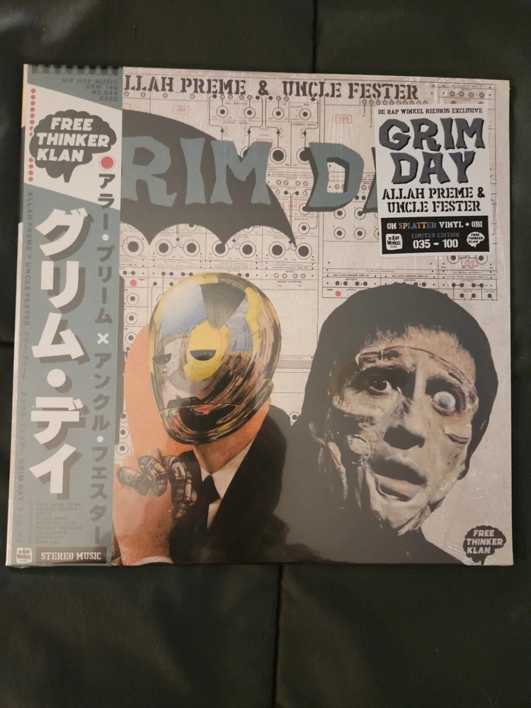 Allah Preme & Uncle Fester Grim Day Obi Splatter Vinyl LP New & Sealed XX/100. De Rap Winkel Exclusive!!! RARE & SOLD OUT!! Will ship securely.
