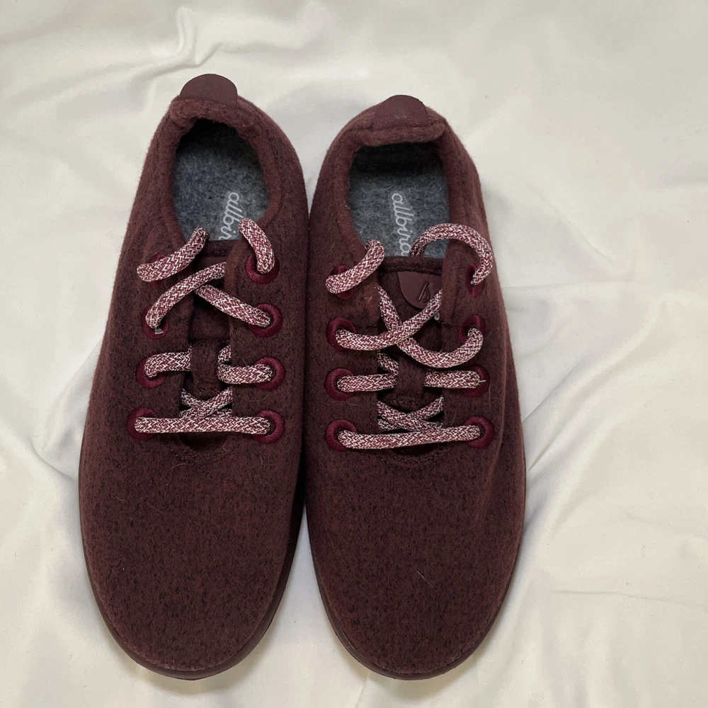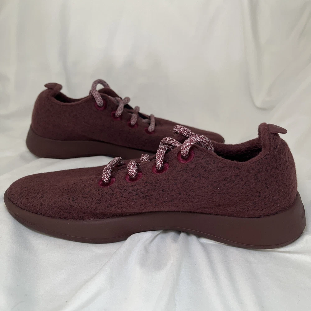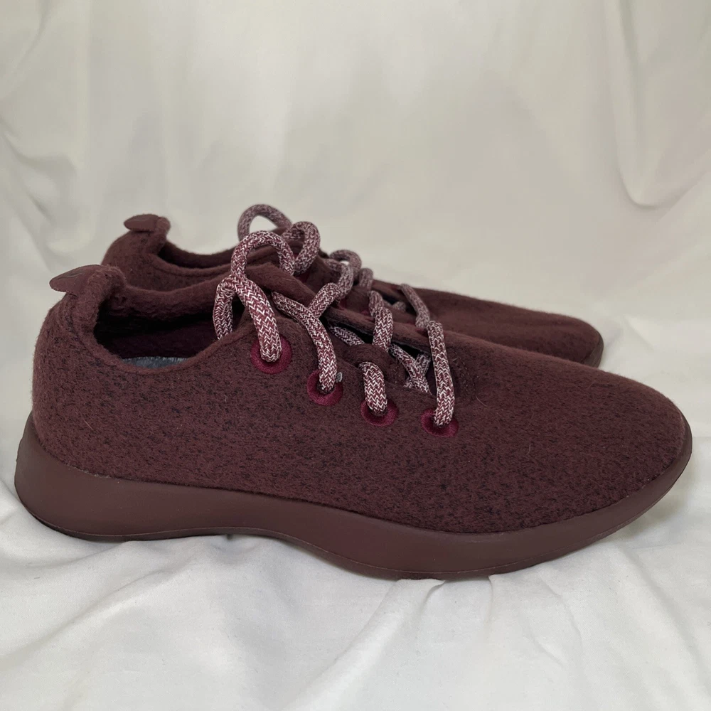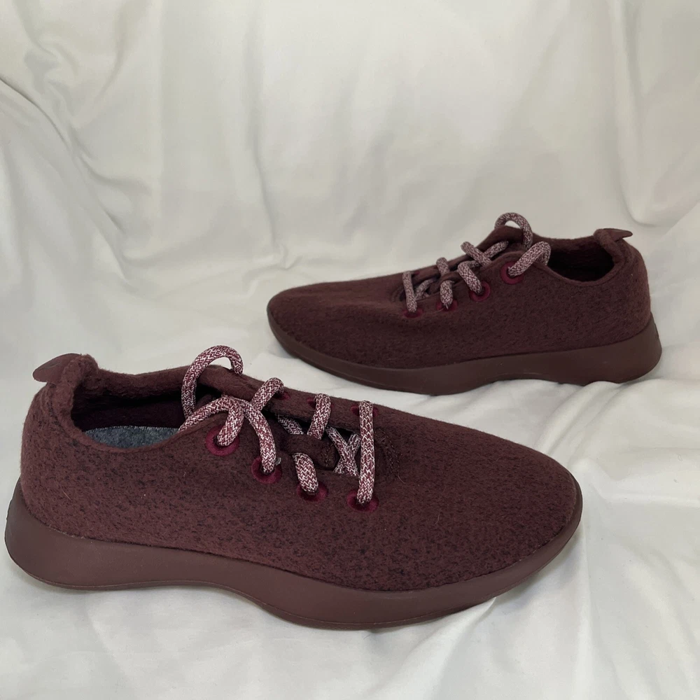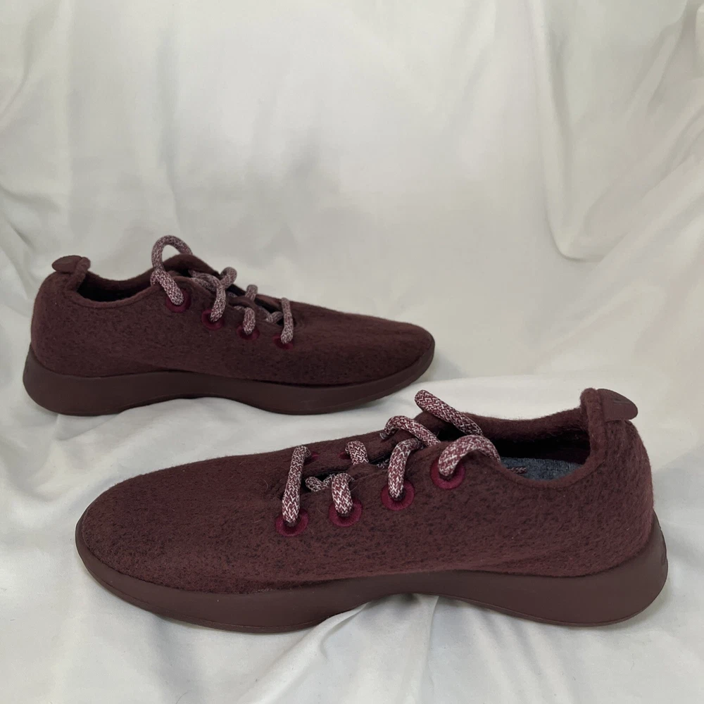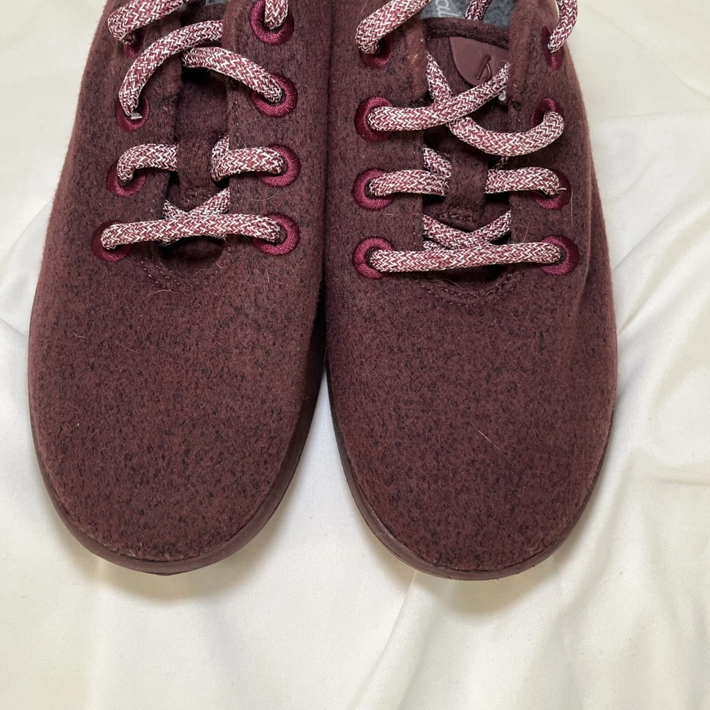 Experience the ultimate comfort and style with these Allbirds Women's Merino Wool Runners Shoes. These sneakers are perfect for any occasion, whether you're going for a run or just running errands. The shoes are made with high-quality wool that ensures breathability and warmth, making them perfect for winter, fall, and spring. The shoes come in a striking red maroon color and feature a low top shoe shaft style with a lace-up closure. The Allbirds Wool Runners are designed with a cushioned and comfortable insole that provides ultimate support and breathability. These sneakers are perfect for women who love nature, the outdoors, and sports. Get your hands on these stylish sneakers and experience the ultimate comfort and style. Excellent, preowned condition.