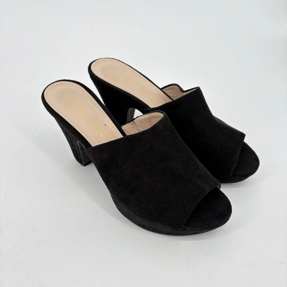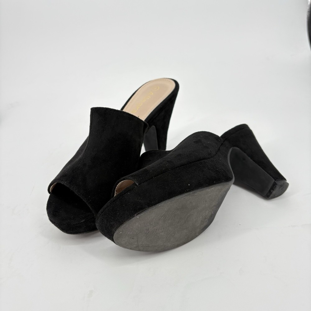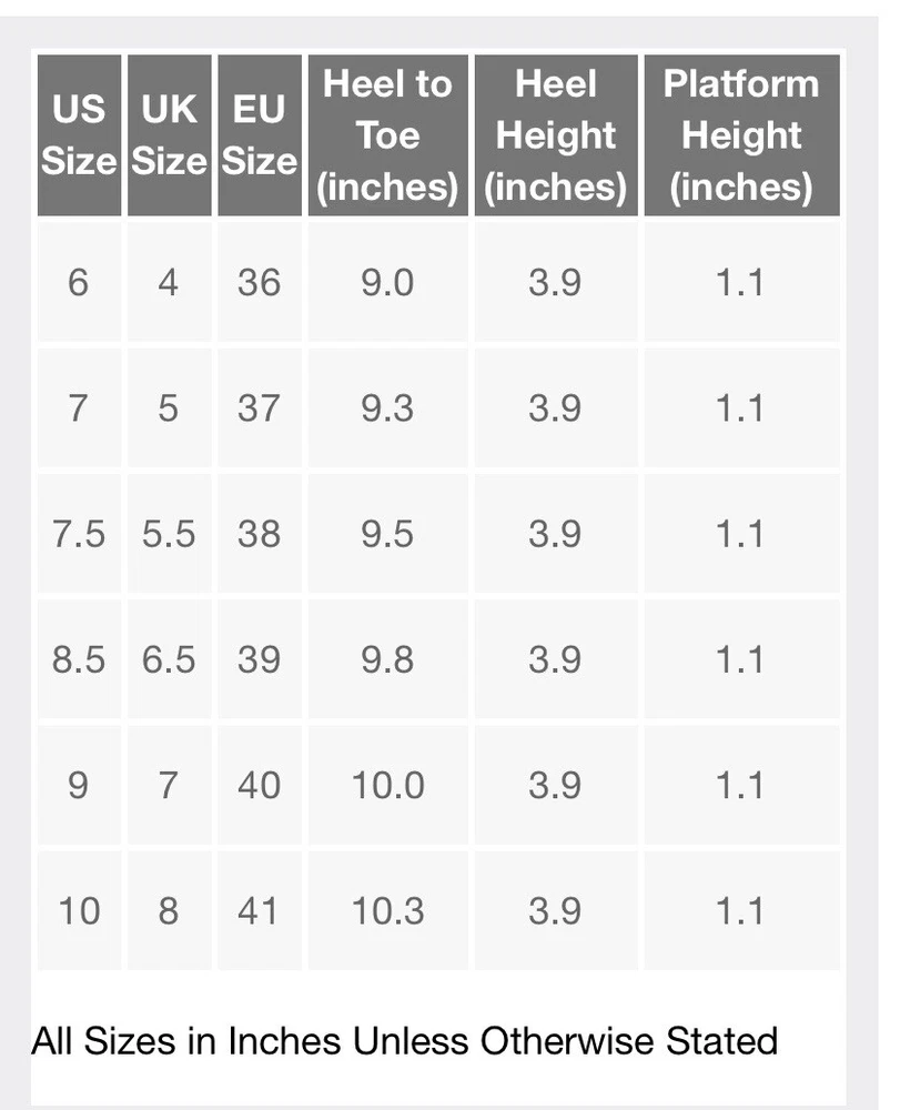 Size and Measurements: Size: 9 (US) Measurements: Heel Height 3 7/8 inches platform Height 1 1/8 Inches Condition Details: Preowned: In Excellent Condition Open Toe/Elastic Strap Shipping Information: Handling Time: Ships within 1-2 business days Shipping Service: Standard Shipping Estimated Delivery Time: Estimated delivery in 3-5 business days International Shipping: International shipping available. Additional fees may apply Return Policy: Returns accepted within 30 days. Buyer pays return shipping.