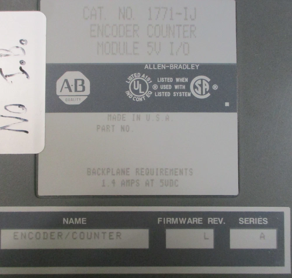Model: 1771-IJ MPN: 1711-IJ Brand: Allen-Bradley Seller Notes: “Item is used and in great condition.” Country/Region of Manufacture: United States Type: Encoder/Counter