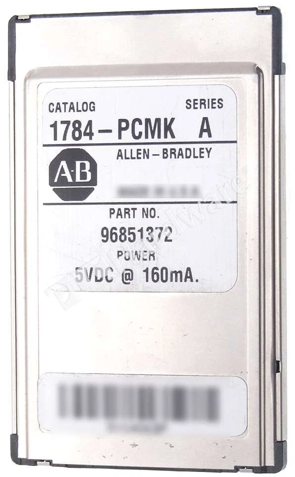 Rockwell Automation > PLC & HMI > I/O Products > PLC-5 > 1784-PCMK/A General Product Information Mfr. Part Number: 1784-PCMK/A Manufacturer: Rockwell Automation Description: Allen-Bradley 1784-PCMK PCMCIA Communication Card DH+, DH485, RIO, allows a notebook computer to interface with other devices on both DH+, DH485, and remote I/O communication networks, Series A Specifications: Form-factor: PCMCIA Type II form-factor network adapter card. Miscellaneous: The Allen-Bradley 1784-PCMK card is a PCMCIA Type II form-factor card that permits a notebook computer to interface with other devices on DH+, DH485, and remote I/O.networks. Requires 1784-PCM Communication Cable, Series A Only. This Item Details You are bidding on: One Allen-Bradley 1784-PCMK Series A, PCMCIA Communication Card DH , DH485, RIO, FULLY TESTED, in excellent working and cosmetic condition. Notes: The unit is Series A. The Serial Number in the pictures has been altered for privacy purposes. Condition: UPP ( U sed in a P LCHardware.com P ackaging ) Shipping and Warranty Availability: In Stock We are NOT Authorized Distributor of this item Shipping Date: Same business day, if cleared payment received by 6 PM EST We sell pre-owned SURPLUS and USED equipment ONLY Warranty: 60 DAYS Replacement Warranty Manufacturer's Warranty and Support DO NOT apply This Item Pictures Shipping Shipping Date: Same business day, if cleared payment received by 6 PM EST Carriers: US Destinations: FedEx Ground Service International Orders: USPS Express Mail International (insured) * Expedited shipping is available for an extra fee * International buyers pay all customs duties, taxes & brokerage fees Payment Payment Methods: Credit Cards Wire-transfer: contact us for payment instructions * Payment must be received within 3 days after the purchase * eBay may collect tax where applicable Warranty and Returns Warranty: 60 DAYS Replacement Warranty. Manufacturers' warranties DO NOT apply Product Returns: Return Authorization is required for all Product Returns Warranty and Returns are subject to our Policies and Terms Products must be returned in the same condition as delivered Contact Us Company Address: PLC Hardware 11706 Garrison Forest Rd Owings Mills, MD 21117, USA Mon-Fri: 8:30am - 8.00pm ET Toll Free: 1. 800. 752. 5962 Email: PLCHardware.com We buy Allen Bradley, Siemens, Schneider Electric & Fanuc surplus Disclaimer PLC Hardware (PLCH) is an independent distributor of used and pre-owned surplus industrial automation and networking equipment. We are not an Authorized Distributor or in any way affiliated with Cisco, Fanuc, HP, Rockwell Automation, Schneider Electric, Siemens and any other listed manufacturers. We have developed our own global sourcing relationships with End Users, independent distributors, auction houses, asset recovery companies, independent contractors and procure our equipment through such sources. PLC Hardware sells hardware products only and does not re-sell software licenses. Some hardware products may contain software and may not be legally operated without first purchasing a proper software license from the manufacturer of such products. PLC Hardware respects intellectual property of others, and we ask our customers to do the same. Customer acknowledges and agrees that PLCH does not provide any operating system software or software right-to-use licenses with the products it sells. Customers understand and agree that proper software licensing, software maintenance and upgrades are subject to applicable manufacturer's Software Licensing Agreement. Customer shall be solely responsible for obtaining proper software licenses for applicable products from the manufacturer. As PLC Hardware is not an Authorized Distributor of the products, manufacturers' warranties and support do not apply . Customers must check manufacturer’s website for further information. All listed logos, trademarks or service marks are property of their respective owners.