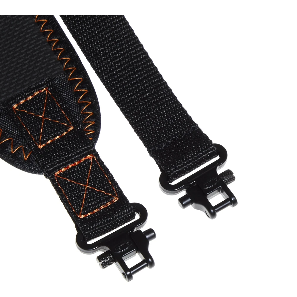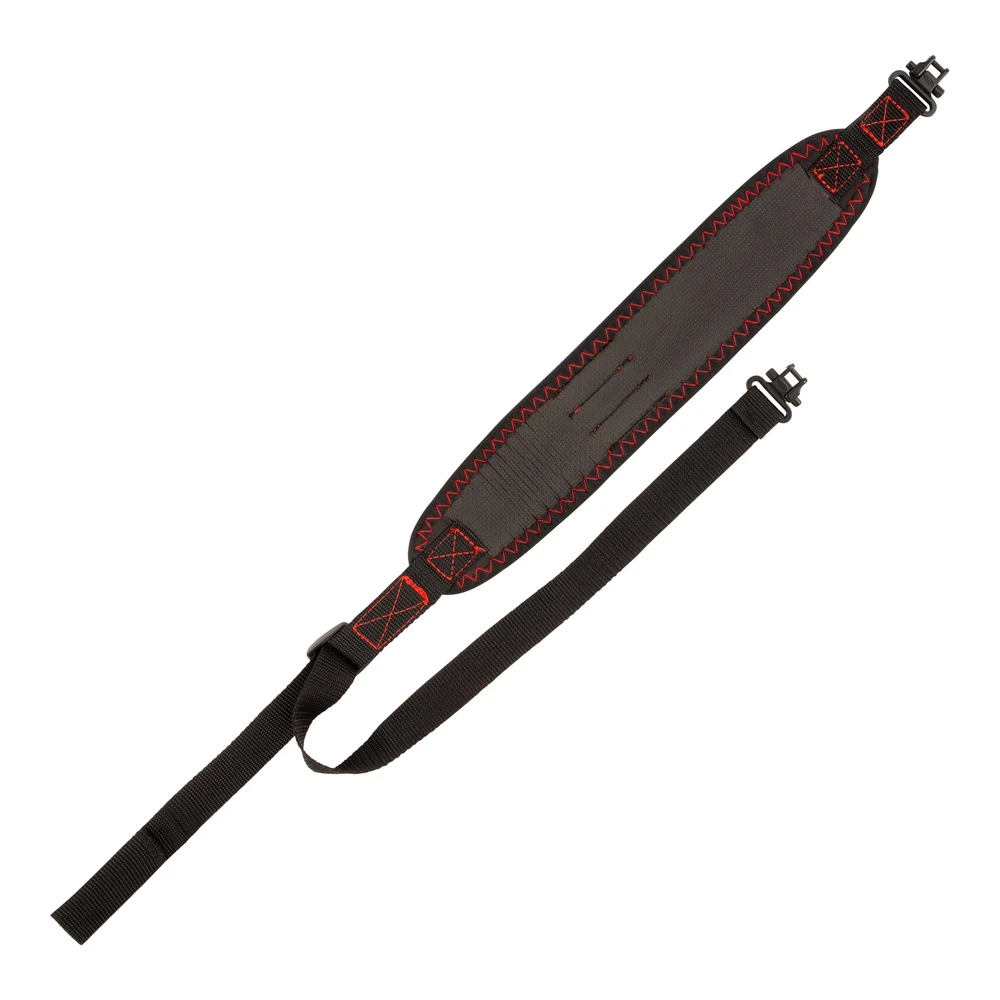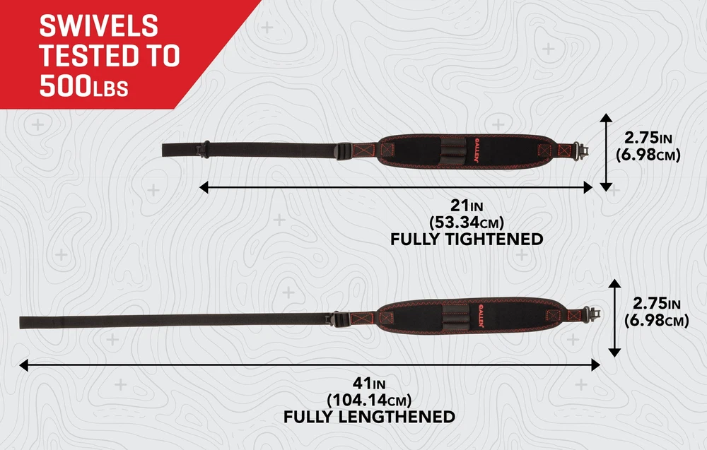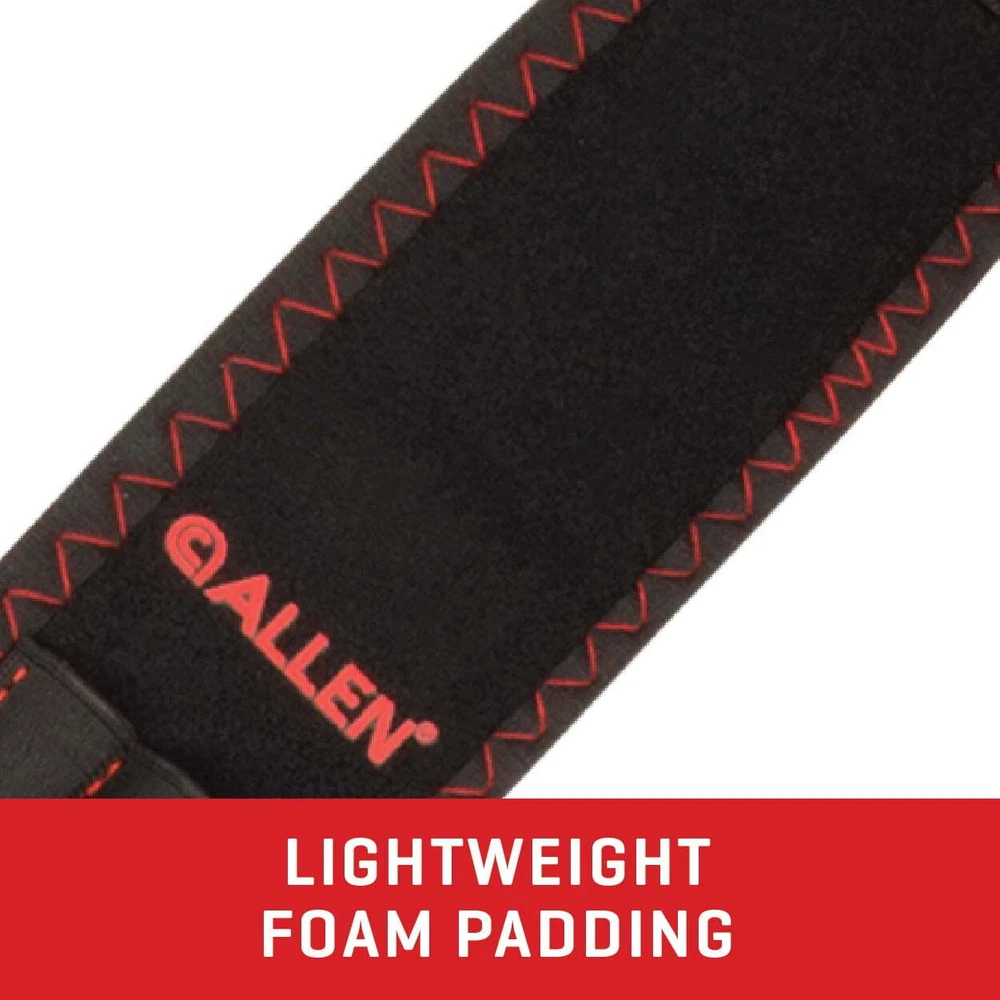 The Allen Company Adjustable Daytona Gun Sling features a rugged, heavy-duty design with swivels tested up to 500-pounds. Lightweight, neoprene padding is comfortable on your shoulder and provides a texture grip to ensure your gun sling will not fall off while in use. Elastic rifle cartridge loops keep you ready when at the range or in the field. Gun sling adjusts from 21-inches to 42-inches long, depending on your firearm. Transport your firearm to and from the field with confidence and security. Neoprene Firearm Sling. Brown. Allen Company Daytona Neoprene Firearm Sling, Adjustable Length 21" to 42"L, Black. Neoprene Shoulder Pad Cushioning Elastic Rifle Cartridge Loops Black Heavy Duty Web Construction Adjustable to desired length Highly durable, securely holding firearm in place 42" Max Length 21" Min Length Allen Company Daytona Neoprene Firearm Sling, Adjustable Length 21" to 42"L, Black