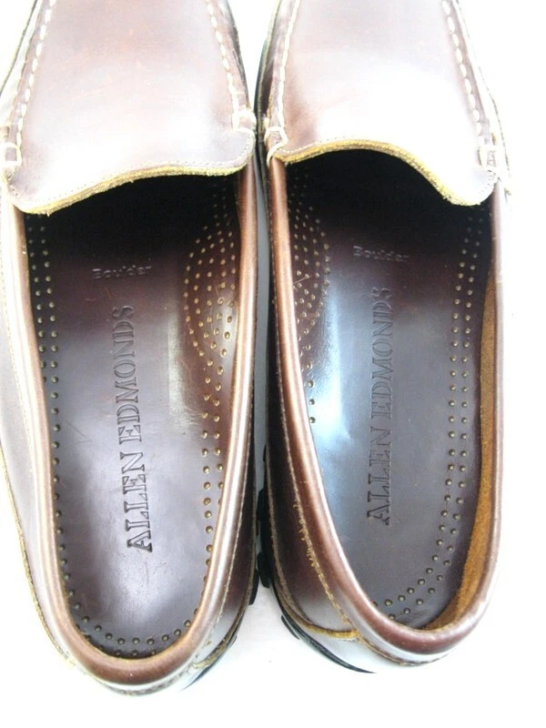 S teve’s N ame B rand S hoes Description This listing is for a pair of Allen Edmonds "BOULDER" Driving Mocs. Retailed for $295!! Style Slip-on moc-toe Venetian style loafer Dress it up or down, perfect any way you style it Wear with or without socks Relaxed Fit, slightly roomy feel Performance Designed to repel dirt Premium traction Rubber sole Craft Handsewn construction Built on the Handsewn 145 Last Premium leather with constrast stitching Shoe Trees Not Included In Auction!! THE SHOES ARE MARKED WITH A “NO WARRANTY" ON THE SOLES TO PREVENT A RETAIL STORE RETURN. ALL RETURNS MUST BE HANDLED THROUGH US DIRECTLY ON EBAY. Shipping -US shipping is $11.99 for the first pair and $5.00 for each additional pair. To be eligible for the shipping discount you must pay for all shoes purchased at the same time. -Canada shipping is $30.00 and combined shipping will be $10.00 for each additional pair. -All other worldwide shipping will be $40 for the first pair and combined shipping $10.00 for each additional pair. About Us We are a family owned business that has been serving the eBay community for the last 10 years. We are committed to providing our customers with excellent customer service and are committed to 100% customer satisfaction. We purchase store returns, manufacturer defects and first quality items and offer these to our customers at a reasonable price. If there is a problem with an item or a transaction with our shoes we simply ask that you contact us before you leave us feedback. We will do our best to make it right so that you can have a positive experience with us. Return Conditions - Wrong item shipped or defective items are eligible for a full refund. -International buyers must pay return shipping. -U.S. Customers are responsible for shipping charges on returns unless we are in error. -Please try on the shoes on carpet or a surface that does not soil or damage the outsoles. Return Instructions -Request a return by contacting us through the eBay message service. We will send you the return address to send the shoes back to. Please include the item number and the shoe size and style when you request the return. Return Processing -Refunds are issued via PayPal or to the credit card within 3 business days of receiving the item. b-166N CHECK OUT OUR AMAZING ALLEN EDMONDS BELTS IN OUR EBAY STORE!!! WHY PAY RETAIL???