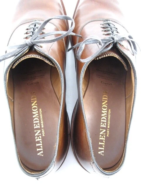 S teve’s N ame B rand S hoes Description This listing is for a pair of Allen Edmonds "CARLYLE" Oxfords. Retailed for $425!! Style Lace-up oxford dress shoe Dress it up or down, perfect any way you style it Classic Fit, fits true to size Performance 360º Bench Welt construction for durability and stability CustomCork™ insole forms a custom fit Single oak leather sole with regular heel Craft Handcrafted in Port Washington, WI of fine imported materials Built on the welted 108 Last Premium European calfskin leather Shoe Trees Not Included In Auction!! THE SHOES ARE MARKED WITH A “NO WARRANTY" ON THE SOLES TO PREVENT A RETAIL STORE RETURN. ALL RETURNS MUST BE HANDLED THROUGH US DIRECTLY ON EBAY. Shipping -US shipping is $11.99 for the first pair and $5.00 for each additional pair. To be eligible for the shipping discount you must pay for all shoes purchased at the same time. -Canada shipping is $30.00 and combined shipping will be $10.00 for each additional pair. -All other worldwide shipping will be $40 for the first pair and combined shipping $10.00 for each additional pair. About Us We are a family owned business that has been serving the eBay community for the last 10 years. We are committed to providing our customers with excellent customer service and are committed to 100% customer satisfaction. We purchase store returns, manufacturer defects and first quality items and offer these to our customers at a reasonable price. If there is a problem with an item or a transaction with our shoes we simply ask that you contact us before you leave us feedback. We will do our best to make it right so that you can have a positive experience with us. Return Conditions - Wrong item shipped or defective items are eligible for a full refund. -International buyers must pay return shipping. -U.S. Customers are responsible for shipping charges on returns unless we are in error. -Please try on the shoes on carpet or a surface that does not soil or damage the outsoles. Return Instructions -Request a return by contacting us through the eBay message service. We will send you the return address to send the shoes back to. Please include the item number and the shoe size and style when you request the return. Return Processing -Refunds are issued via PayPal or to the credit card within 3 business days of receiving the item. b-589N To protect your investment please check out our Cedar Shoe trees in my Ebay Store with some of the best prices and quality with free shipping. Shoe trees are an investment worth making!!