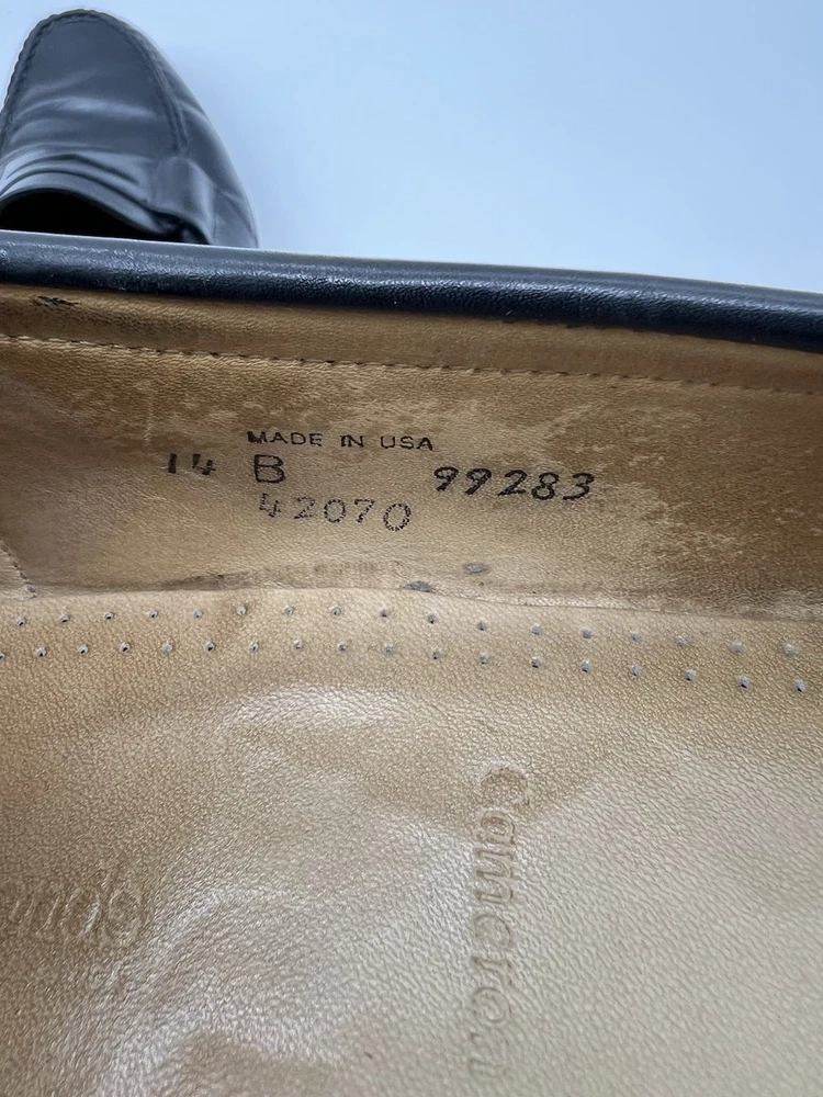 Allen Edmonds Cameron Mens Size 14B Black Leather Penny Loafers Dress Shoes. Shoes are in used condition and have signs of wear but shoes are still in great condition. Upper leather is in good condition and clean , inside is clean and the soles are in good condition. Nice comfortable shoes for casual wear. Condition is pre-owned. Shipped with ups or usps priority mail. Sold as pictures. Thank you! Feel free to message me for any questions. Thank you