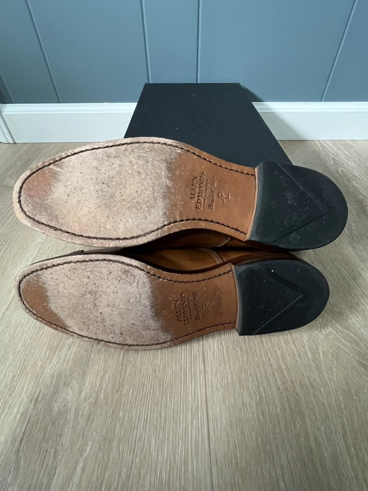 The Allen Edmonds "FIFTH AVENUE" Leather Cap-Toe Oxfords in size 8 E are a stylish and high-quality men's dress shoe. Made in the USA with premium leather, these oxfords feature a classic lace-up closure, solid walnut color, and a timeless cap toe design. With a comfortable E width and the renowned Allen Edmonds brand, these shoes are a versatile and elegant addition to any man's wardrobe. Perfect for formal events or professional settings, these oxfords are crafted with attention to detail and a commitment to quality.