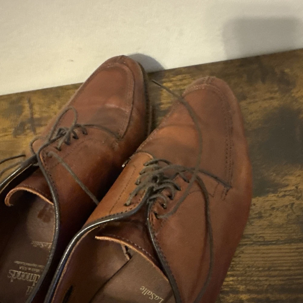 The Allen Edmonds Men's LaSalle Oxford LaceUp in size 9D is a high-quality dress shoe perfect for formal occasions. Made with premium leather materials and featuring a solid Chili color, this lace-up shoe boasts a classic split toe design. Crafted in the United States, this shoe is a stylish and durable choice for men looking for a sophisticated and well-crafted footwear option. The Allen Edmonds brand is known for its exceptional craftsmanship and attention to detail, making this shoe a reliable and fashionable choice for any gentleman's wardrobe.