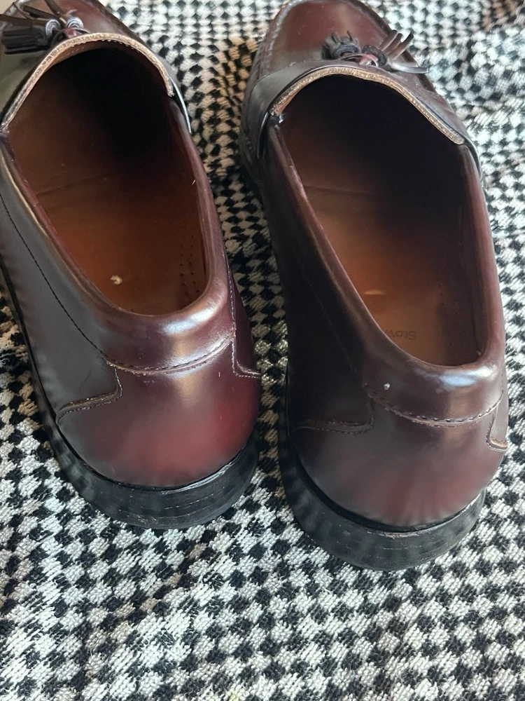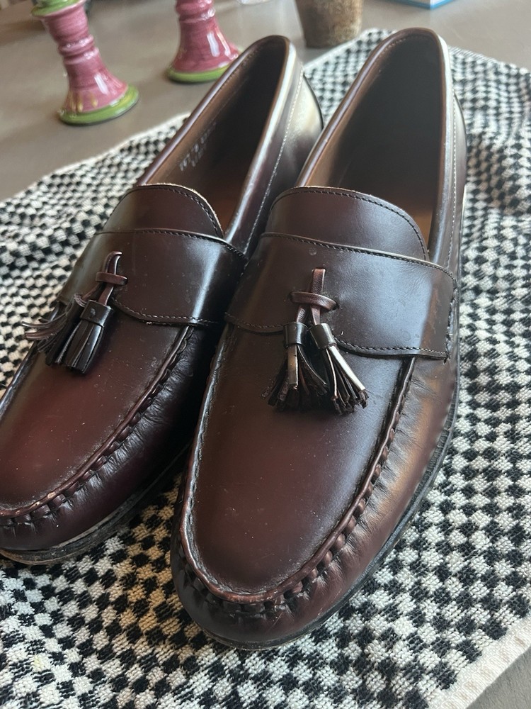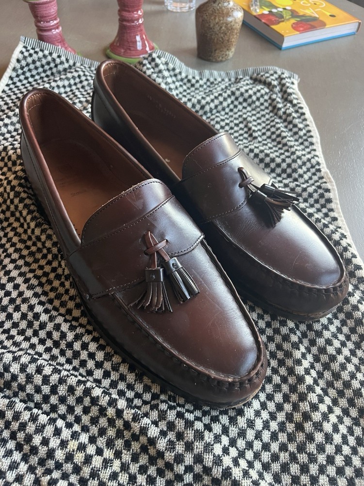 The Allen Edmonds Stowe Men's Tassel 14 is a stylish and sophisticated dress loafer in a solid brown color with tasselled accents. Made with high-quality leather, this slip-on shoe features a leather lining, insole, and outsole for ultimate comfort and durability. Perfect for the summer, fall, and spring seasons, these loafers are a great addition to any man's wardrobe, adding a touch of elegance to any outfit. With its classic design and exceptional craftsmanship, the Allen Edmonds Stowe loafers are sure to make a statement.