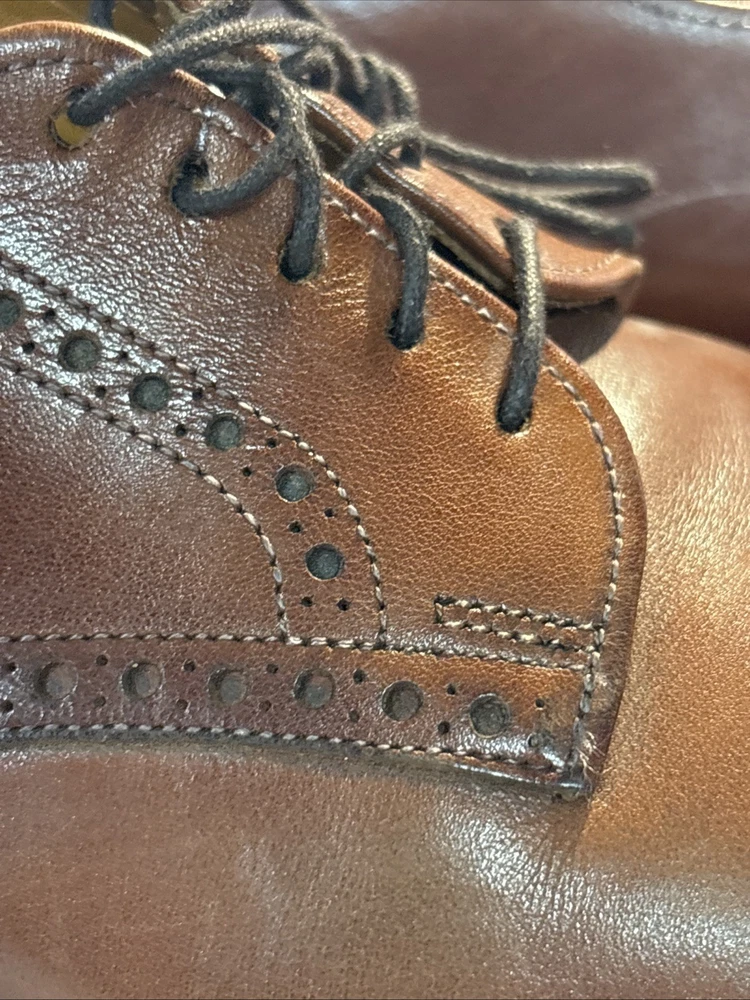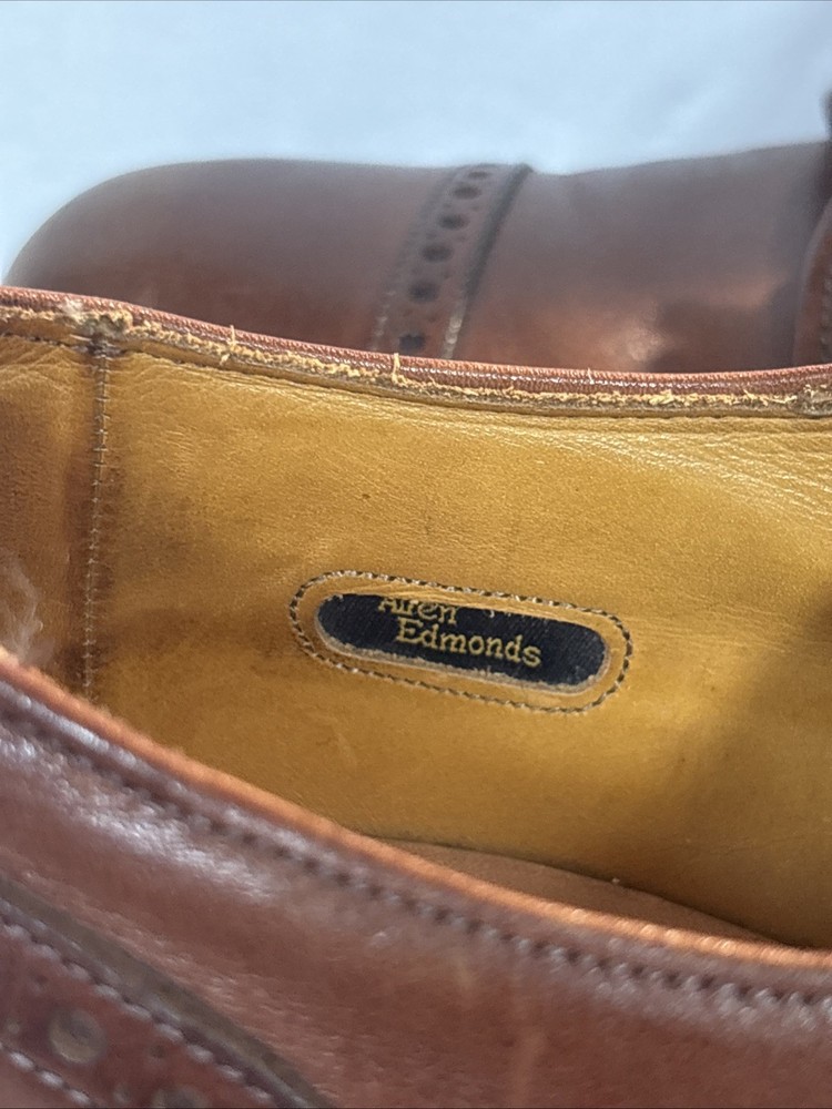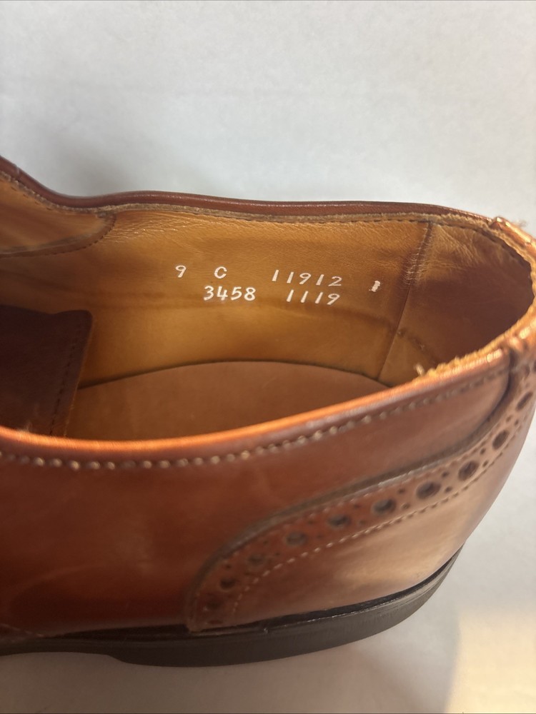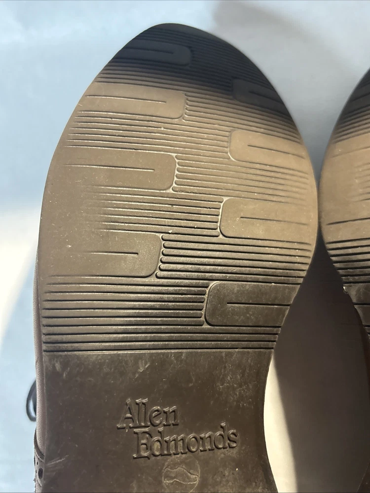 The Allen Edmonds Cap-Toe Derby Dress Shoes in brown leather size 9 (C) are a stylish and sophisticated choice for men looking to elevate their formal footwear. These shoes feature a classic derby style with a distinctive cap toe design, perfect for adding a touch of refinement to any formal outfit. The high-quality leather construction ensures durability and a luxurious feel, making them a versatile and timeless wardrobe staple for the modern gentleman.