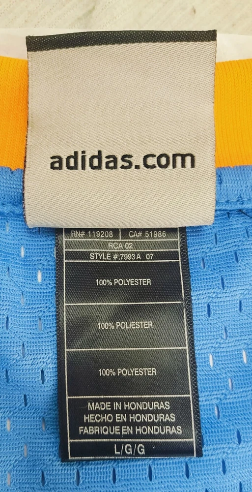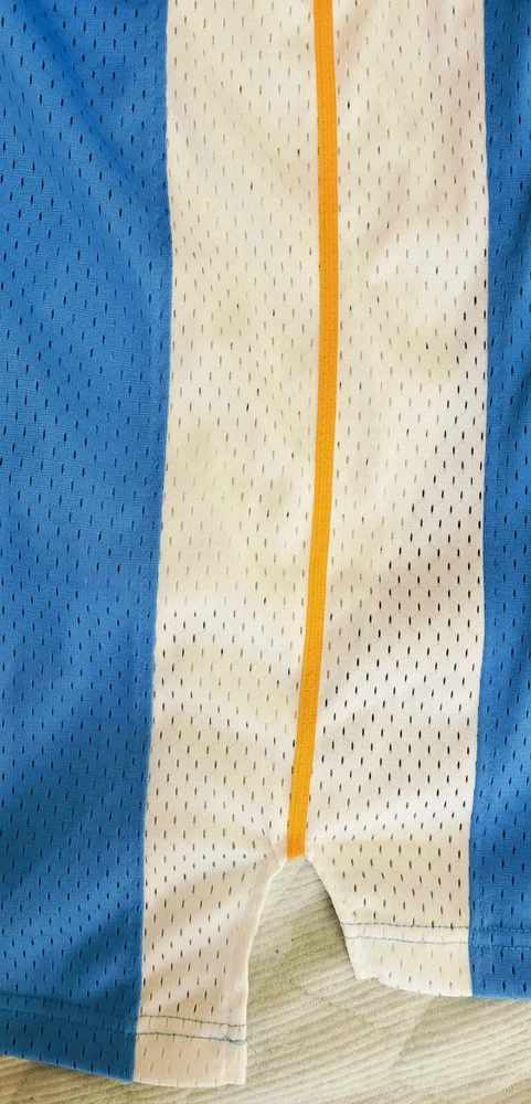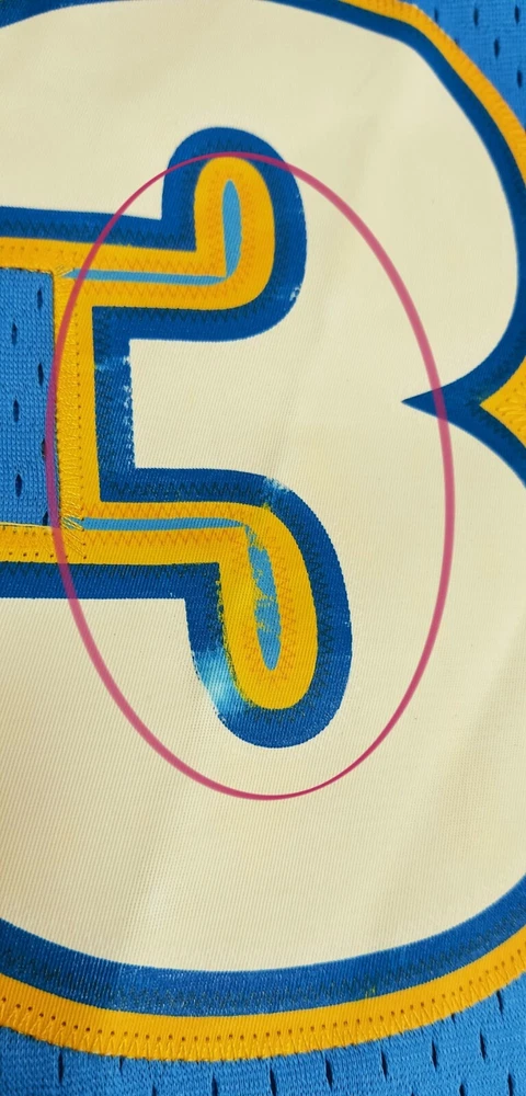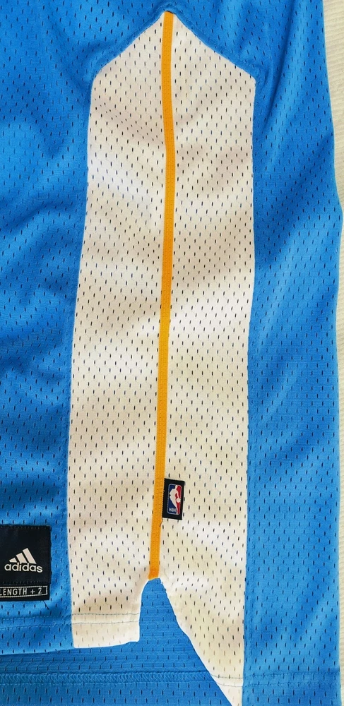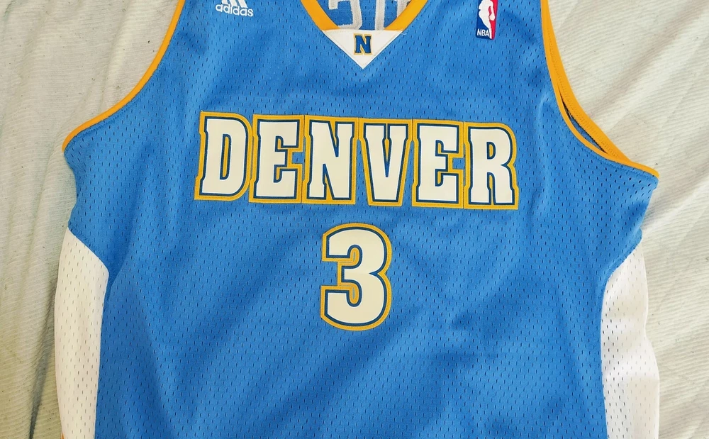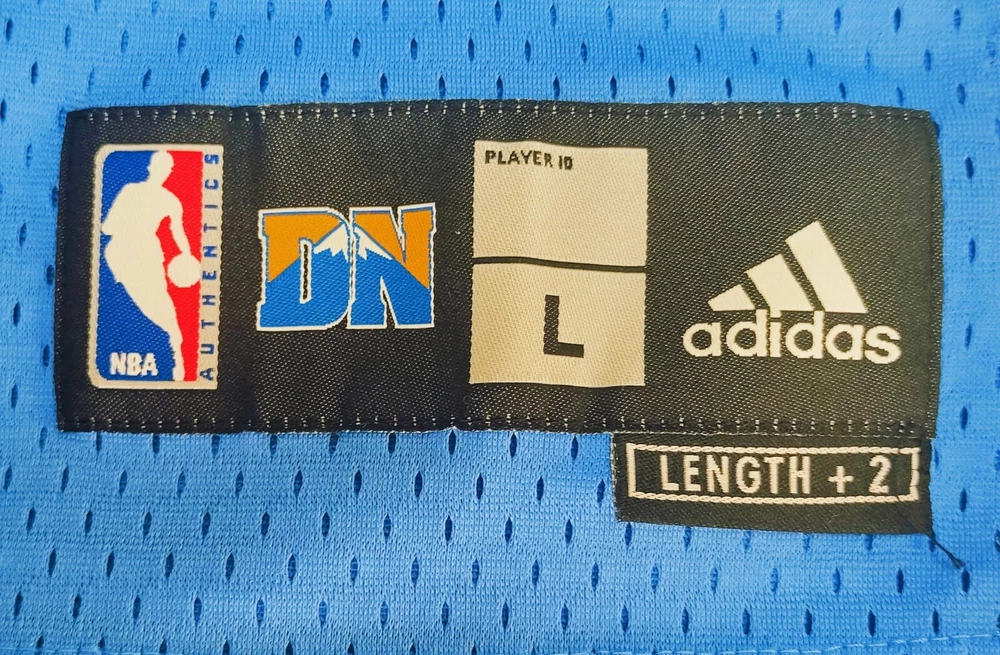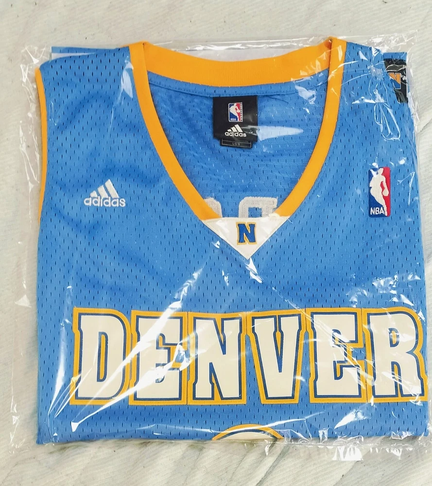 Allen Iverson Denver Nuggets Baby Blue Authentic Jersey Brand: Adidas, NBA Authentics Size: Large (+2 Length) (Measurements below) Care Instructions: 100% polyester Machine wash cold water Wash with like colors Do Not Bleach Do Not Iron Ornamentation Made in Honduras Details: Condition: Used but in very good condition. Design: Iconic Denver Nuggets baby blue jersey with yellow and white accents. "Nuggets" and the number "3" are stitched on the front, and "Iverson" with "3" is stitched on the back. Slight smudge on the number "3" on the back. No discoloration, no loose stitches, and all embroidery is intact. Printing Condition: All logos, text, and numbers are intact except for the slight smudge on the back "3." Measurements: Collar: 18 cm (7.1 inches) Length: 82 cm (32.3 inches) Chest: 58 cm (22.8 inches) Weight: 250 g Packaging Details: The jersey will be shipped folded in protective wrapping and placed in a padded envelope. Environment: Tobacco-free and pet-free home. Carefully maintained over the years. This is a must-have for fans of Allen Iverson and the Denver Nuggets! Own a piece of NBA history with this stylish and well-preserved jersey. Don’t miss your chance to add it to your collection!