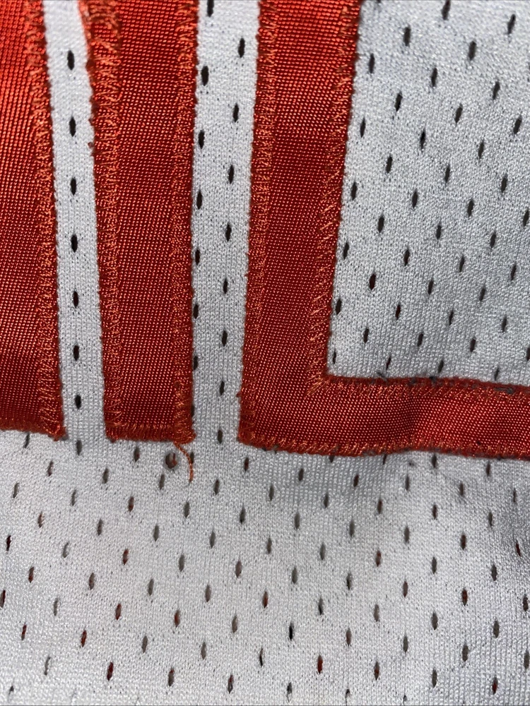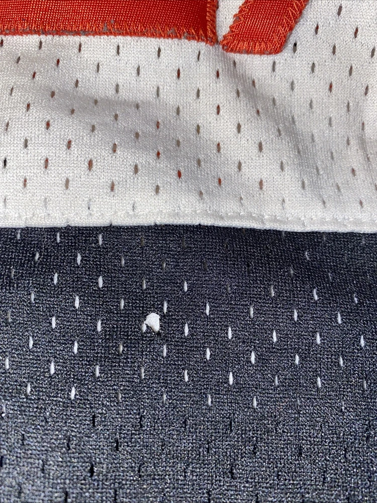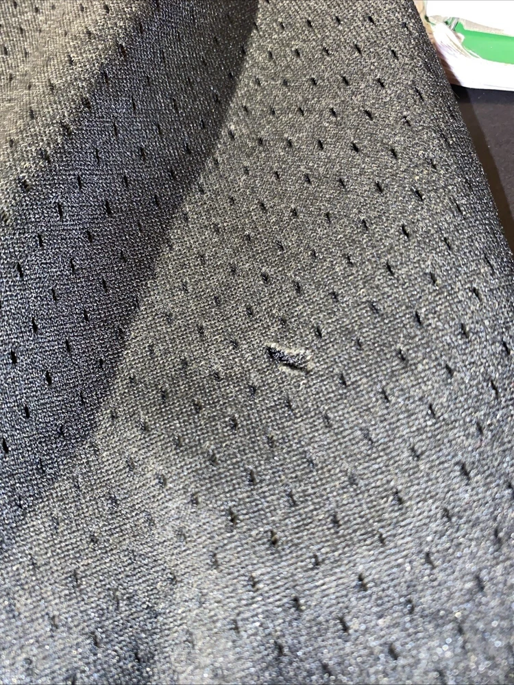 Flaws shown in photos. Please be aware of flaws before buying. Flaws include Small holes Dirt/stain on white on the arm.