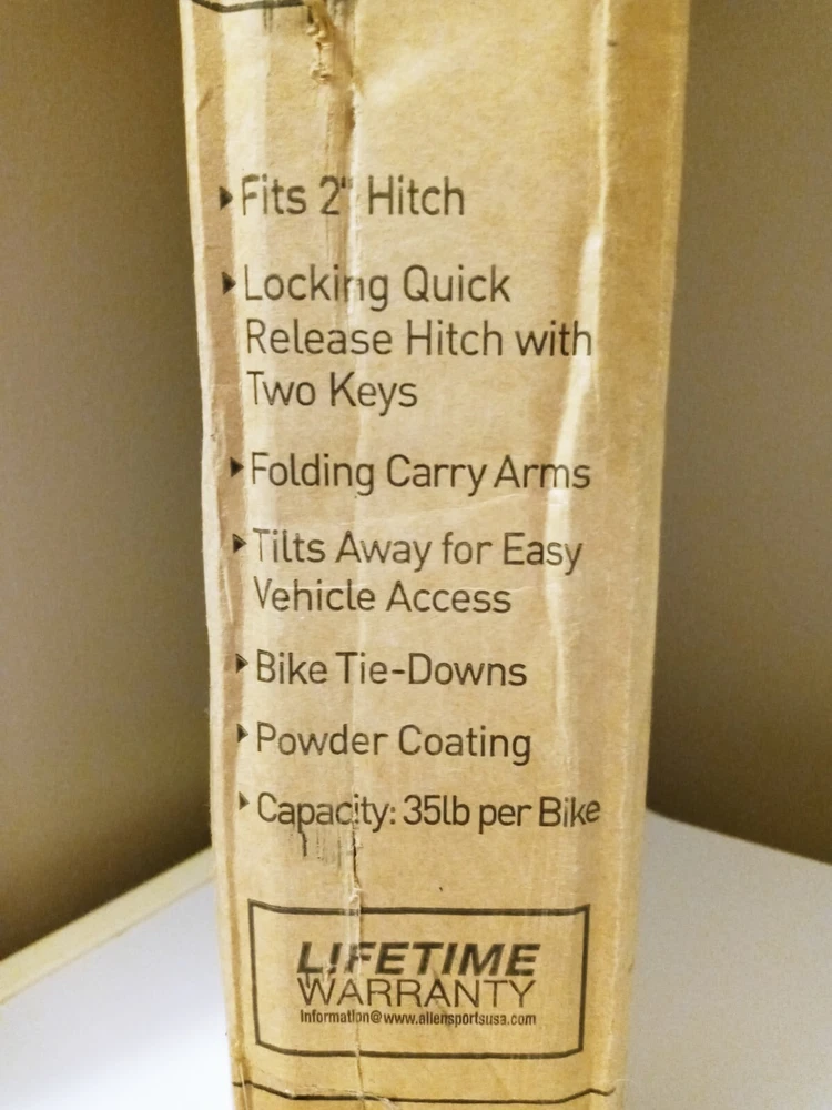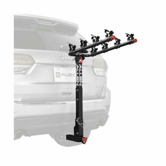 New In Box Allen Sports Deluxe Quick Install Locking Hitch Bike Rack. We didn't realize our SUV wasn't able to have a hitch installed, so we never used this or even opened the box. Bought new for $128.60 The bike rack is high-quality and durable and designed for easy installation and secure transport. This hitch rack has a capacity to hold up to 2 bikes, featuring a sleek black color and a sturdy construction weighing 70 lbs. Its hitch mount design ensures a stable and secure connection to your vehicle, making it an ideal choice for cyclists looking to transport their bikes safely and conveniently.
