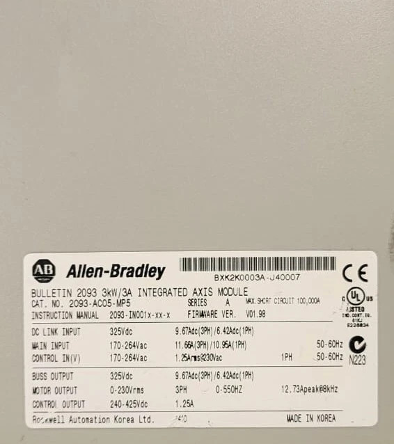 Allen-Bradley 2093-AC05-MP5 Ser A Kinetix 2000 3kW 230VAC Integrated Axis Module In good working and cosmetic condition. Tested and works. See pictures I will ship within one business day. International buyers are welcome Feel free to ask any questions. I am always happy to help. Customer satisfaction is our priority. Thanks