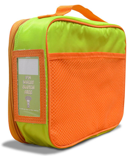 Lunch just got a little safer! Introducing the AllerMates lunch bags featuring the AllerMates gang! Handy carry handle makes it easy to tote and the colorful design makes it easy to find in any school bag. This lunch bag is made of quality materials and BPA, lead and phthalate-free with eco friendly PEVA lining to help keep food fresh. Lunch bag for children who are Wheat/Gluten Free. This lunch bag features the AllerMates Wheat/Gluten Free character: Professor Wheatly! The AllerMates Wheat/Gluten Free lunch bag features fun phrases on it such as: "This is a no gluten zone", "No 'G' for me", "Wheat Gluten free yessiree!" and more! Features: • Zippered pocket and mesh pouch are perfect for storing utensils or napkins • Insulated Lunch Bag helps keep food fresh • BPA and phthalates free • Handle allows for easy carrying • Heat treated 420D outer shell provides durability and water resistance • PE inner liner is food safe and easy to clean • Details: 7.5"H x 10"W x 3"D