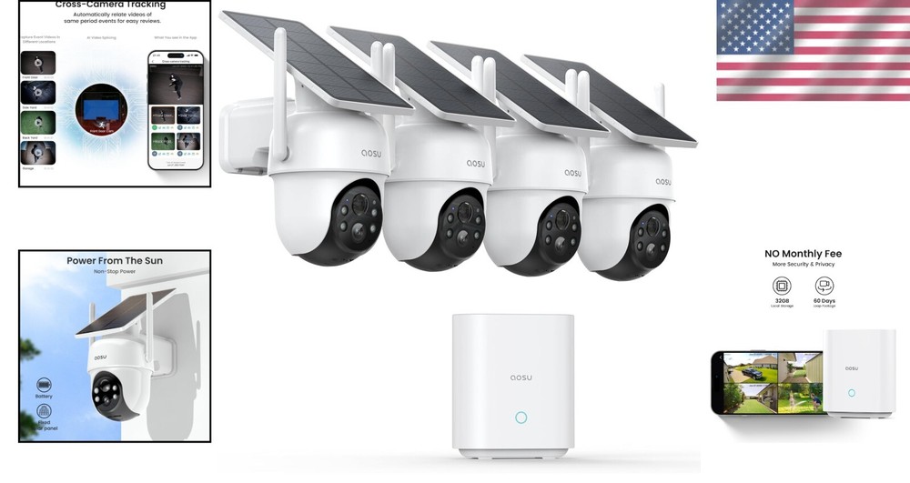 All-in-One 4-Cam Wireless Security Kit with Auto Tracking & 32GB Storage ‹ › ‹ › ‹ › ‹ › ‹ › ‹ › ‹ › ‹ › ‹ › ‹ › ‹ › All-in-One 4-Cam Wireless Security Kit Your complete solution for enhanced home security, featuring Auto Tracking and 32GB Storage . Highlights: No Monthly Fee: Enjoy recorded footage without a subscription. All video data is securely stored in the home base with 32GB of local storage, allowing up to 2 months of continuous video loop recording. Safe and Secure: Even if cameras are damaged or lost, your data remains safe, ensuring peace of mind. Instant Notifications: Get real-time alerts and enjoy stable live streaming directly from your home base. Innovative Features: Cross-Camera Tracking: Automatically connects videos of simultaneous events for easy reviews. Multi-View Live Streaming: View up to 4 different camera feeds on one screen simultaneously. One-Click Control: Easily manage the operational status of all your outdoor security cameras. Green & Sustainable: Solar Powered: A built-in solar panel keeps your batteries charged, operating tirelessly with just 3 hours of sunlight per day. Even on cloudy days, you’re covered. Quick Installation: Simple set-up in under 5 minutes with just a drill and three holes. Comprehensive Coverage: 360° Security: Pan & tilt features provide complete surveillance with no blind spots; activities within designated areas are automatically tracked and recorded. Impressive Visuals: 2K Resolution: Capture every detail in stunning 3MP resolution, ensuring clarity day and night. Enhanced Night Vision: Equipped with 4 powerful LED lights, increasing light capture by 100%, providing an exceptional nighttime viewing experience. Why Choose Our All-in-One 4-Cam Security Kit? Secure your home effortlessly and elegantly with this advanced wireless security camera system, designed to provide uninterrupted security and peace of mind. No subscriptions or hidden fees make this an economically sensible choice without compromising on quality. Create a safe haven for your loved ones today—order your All-in-One 4-Cam Wireless Security Kit now! Shipping Free & Fast Shipping - We offer free shipping to most of the USA with a normal delivery time of 3-7 days. However, due to the current situation, additional delivery time (up to 3 weeks) may be required for some items. Alternative Carriers - We may use alternative carriers (e.g. USPS, FedEx, UPS, etc.) to ensure your package arrives safely and on time. Due to the use of multiple carriers, we are unable to provide a tracking number automatically. Handling Time - Orders are processed and shipped within 1-2 business days of receiving cleared payment. Shipping Restrictions - Shipping to Alaska, Hawaii, Puerto Rico, Guam, and other US territories may incur shipping charges or delivery restrictions. Please contact us before ordering, or your order can be refunded/cancelled. State Restrictions - There may be restrictions based on your state of purchase. For example, certain items may not be shipped to California due to state regulations. Contact for Tracking Updates - If you require tracking updates or have any concerns about the delivery of your order, please feel free to contact us, and we will be happy to assist you. Return Please see our eBay Return Policy. Thank you. Payment We accept all major credit cards, PayPal, and Apple Pay for your convenience. Your payment information is secure and encrypted to ensure a safe and seamless transaction. Please complete your payment within 3 days of purchase to avoid any delays in shipping. Feedback Your feedback is extremely important to us. We strive to provide the best products and customer service possible. If you are satisfied with your purchase, please take a moment to leave us a positive review. If you have any concerns or issues with your order, please contact us before leaving negative feedback. We are committed to resolving any problems and ensuring your satisfaction. Contact Us If you have any questions or concerns, please feel free to reach out to our customer support team. You can contact us through the eBay messaging system. We are available Monday to Friday, 9:00 am to 5:00 pm EST, and we will do our best to respond to your inquiry within 24 hours. Thank you for supporting our small family business! UPC: 663992192278 Unit Quantity: 8.38 lb Connectivity: Wireless Compatible Brand: Wireless Security Cameras Features: 360° Pan & Tilt,32GB Homebase,No Monthly Fee,Built-in Solar Panel,Automatic Tracking,2K,Color Night Vision,120 dB Siren,2 Way Audio Smart Home Protocol: Not Set Smart Home Compatibility: Not Set Storage Capacity: 32GB Power Source: Solar,Solar Powered Operating Range: Not Set Year Manufactured: Not Set Brand: Unbranded Type: Security Cameras Model: Wireless Security Cameras Surveillance Technology: Not Set Location: Outdoor Maximum Resolution: 3MP Power: Not Set Operating Sound Rating: Not Set MPN: Not Set Unit Type: lb Number of Cameras Included: 4 Number of Channels: 4 Color: Black Color Mode: Color Item Height: Not Set Item Width: Not Set Voltage: Not Set Aspect Ratio: Not Set Screen Size: Not Set Display Technology: Not Set Contrast Ratio: Not Set Item Weight: 8.38 lbs Response Time: Not Set Manufacturer Warranty: Not Set Country/Region of Manufacture: Not Set