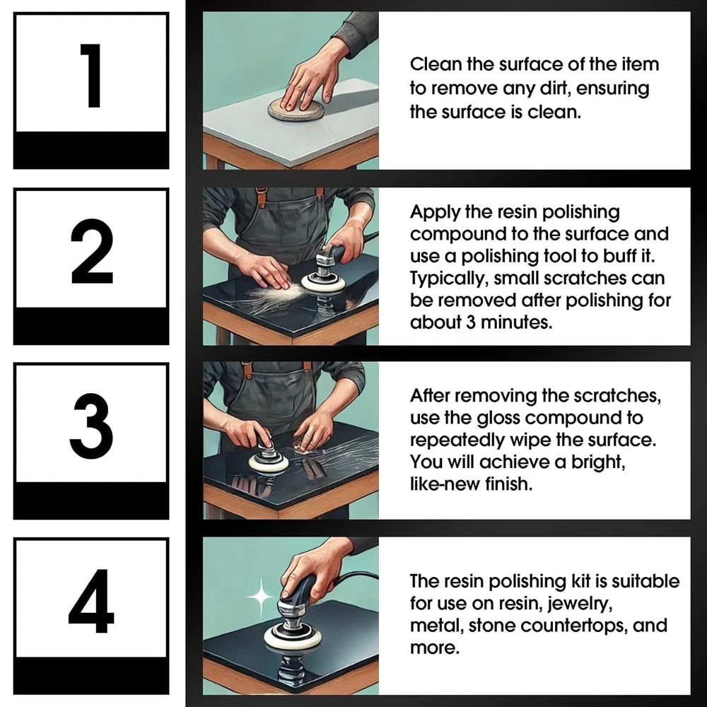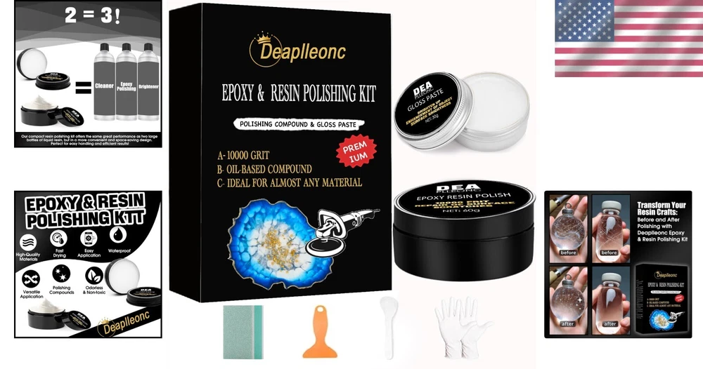 All-in-One Epoxy Resin Polishing Kit – Effortless Shine for Jewelry & Stone ‹ › ‹ › ‹ › ‹ › ‹ › ‹ › ‹ › ‹ › ‹ › All-in-One Epoxy Resin Polishing Kit - Effortless Shine for Jewelry & Stone Features: Epoxy Resin Polishing Compound: Easily removes swirls, scratches, and other small imperfections from most epoxy surfaces. Restores the luster to your artwork, bringing neglected pieces back to life. Long-Lasting Shine: Polishing kits eliminate the plague of dull-looking epoxy and enhance the beauty of crafts, jewelry, stone countertops, and more. Quick and Easy to Use: Achieve a brilliant, mirror-like shine in seconds, providing instant satisfaction. Complete Kit Includes: Epoxy Polish (60g), A Resin Polishing Compound (30g), Scraper, Sponge, and Instructions for use. Professional Service: Perfect for both professionals and DIY enthusiasts with 24-hour technical support available. Benefits: Effortlessly restores stunning shine to a variety of surfaces. Designed for versatility – works beautifully on jewelry, crafts, and stone. Ideal for anyone, regardless of skill level, to achieve professional results at home. Convenient and easy-to-use components for a seamless polishing experience. Why Choose Our Epoxy Resin Polishing Kit? If you seek a luxurious finish that enhances your cherished items, look no further than our All-in-One Epoxy Resin Polishing Kit. This comprehensive kit is designed to transform dull surfaces into vibrant, eye-catching masterpieces, restoring their original shine with minimal effort. Whether you’re a seasoned professional or a creative DIYer, attain flawless results effortlessly and elevate your craft. Don't let imperfections detract from your beautiful artwork – order the All-in-One Epoxy Resin Polishing Kit today and experience the rejuvenating power for yourself! Shipping Free & Fast Shipping - We offer free shipping to most of the USA with a normal delivery time of 3-7 days. However, due to the current situation, additional delivery time (up to 3 weeks) may be required for some items. Alternative Carriers - We may use alternative carriers (e.g. USPS, FedEx, UPS, etc.) to ensure your package arrives safely and on time. Due to the use of multiple carriers, we are unable to provide a tracking number automatically. Handling Time - Orders are processed and shipped within 1-2 business days of receiving cleared payment. Shipping Restrictions - Shipping to Alaska, Hawaii, Puerto Rico, Guam, and other US territories may incur shipping charges or delivery restrictions. Please contact us before ordering, or your order can be refunded/cancelled. State Restrictions - There may be restrictions based on your state of purchase. For example, certain items may not be shipped to California due to state regulations. Contact for Tracking Updates - If you require tracking updates or have any concerns about the delivery of your order, please feel free to contact us, and we will be happy to assist you. Return 30-Day Hassle-Free Returns - We want you to be completely satisfied with your purchase. If you are not, you can return the item within 30 days of receiving it for a full refund or exchange. Easy Return Process - To start a return, simply contact us and we will provide you with a prepaid return shipping label and detailed instructions. Restocking Fee - There are no restocking fees for returns. However, the buyer is responsible for return shipping costs if the return is not due to a seller's error. Refund Processing Time - Refunds will be processed within 5 business days of receiving the returned item in its original condition. Payment We accept all major credit cards, PayPal, and Apple Pay for your convenience. Your payment information is secure and encrypted to ensure a safe and seamless transaction. Please complete your payment within 3 days of purchase to avoid any delays in shipping. Feedback Your feedback is extremely important to us. We strive to provide the best products and customer service possible. If you are satisfied with your purchase, please take a moment to leave us a positive review. If you have any concerns or issues with your order, please contact us before leaving negative feedback. We are committed to resolving any problems and ensuring your satisfaction. Contact Us If you have any questions or concerns, please feel free to reach out to our customer support team. You can contact us through the eBay messaging system. We are available Monday to Friday, 9:00 am to 5:00 pm EST, and we will do our best to respond to your inquiry within 24 hours. Buy it now and enjoy a pleasant shopping experience! UPC: Not Set Model: Not Set MPN: Not Set Unit Quantity: 1.06 Color: Multicolor Brand: Unbranded Country/Region of Manufacture: Not Set Unit Type: oz Handmade: Not Set
