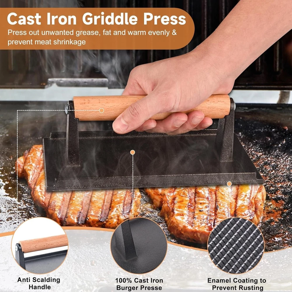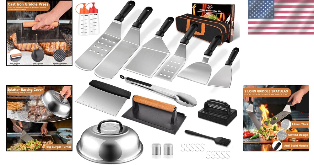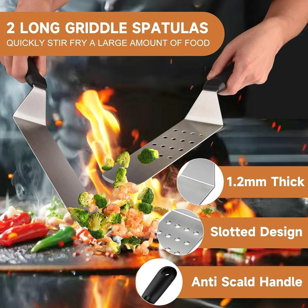 All-in-One Griddle Accessories Kit, 27-Pcs Stainless Steel Set with Storage Bag ‹ › ‹ › ‹ › ‹ › ‹ › ‹ › ‹ › ‹ › All-in-One Griddle Accessories Kit 27-Pcs Stainless Steel Set with Storage Bag Complete BBQ Experience This meticulously crafted griddle accessories kit includes everything you need to elevate your grilling experience: 1* Long Griddle Spatula 1* Slotted Spatula 1* Cast Iron Griddle Press 1* Increase the Shovel 1* Burger Flipper 1* Slant Edge Scraper 1* Basting Cover 1* Tongs 1* 3-Sided Bevel & Griddle Spatula 2* Squeeze Bottles 1* Chopper 10* S-Shaped Hooks 1* Cleaning Brush 2* Spice Shakers 1* Sauce Brush 1* Storage Bag 1* Gift Box Premium Quality Materials Crafted from high-quality stainless steel with a robust 1.2mm thickness, this grilling accessories set is heat and rust resistant, ensuring durability for countless culinary adventures. The heat-resistant plastic handles provide peace of mind with effective heat isolation, protecting you from burns while you grill your favorites. Convenient and Practical Easy to clean: Hand wash or dishwasher safe. Effortless storage with the included storage bag. Spatulas feature cleaning holes for easy hanging and organization. Versatile and Functional This extensive selection of grill tools is perfect for all indoor and outdoor grilling needs. Enjoy the freedom to cook like a professional chef: Long spatula for handling large quantities with ease. Basting cover to retain heat and moisture. Griddle press designed to evenly cook food and prevent shrinkage. Cleaning brush for effortless post-cook cleanup. The Perfect Gift Beautifully packaged in a quality gift box, this griddle accessories kit makes an ideal gift for family and friends. Spark culinary creativity and enhance shared experiences at kitchen gatherings, patio parties, or memorable camping trips. Let this practical kit inspire endless gourmet adventures! Enhance Your Grilling! Don’t settle for ordinary grilling tools. Elevate your cooking adventures with our All-in-One Griddle Accessories Kit, where quality meets convenience and passion for grilling knows no bounds! Shipping Free & Fast Shipping - We offer free shipping to most of the USA with a normal delivery time of 3-7 days. However, due to the current situation, additional delivery time (up to 3 weeks) may be required for some items. Alternative Carriers - We may use alternative carriers (e.g. USPS, FedEx, UPS, etc.) to ensure your package arrives safely and on time. Due to the use of multiple carriers, we are unable to provide a tracking number automatically. Handling Time - Orders are processed and shipped within 1-2 business days of receiving cleared payment. Shipping Restrictions - Shipping to Alaska, Hawaii, Puerto Rico, Guam, and other US territories may incur shipping charges or delivery restrictions. Please contact us before ordering, or your order can be refunded/cancelled. State Restrictions - There may be restrictions based on your state of purchase. For example, certain items may not be shipped to California due to state regulations. Contact for Tracking Updates - If you require tracking updates or have any concerns about the delivery of your order, please feel free to contact us, and we will be happy to assist you. Return 30-Day Hassle-Free Returns - We want you to be completely satisfied with your purchase. If you are not, you can return the item within 30 days of receiving it for a full refund or exchange. Easy Return Process - To start a return, simply contact us and we will provide you with a prepaid return shipping label and detailed instructions. Restocking Fee - There are no restocking fees for returns. However, the buyer is responsible for return shipping costs if the return is not due to a seller's error. Refund Processing Time - Refunds will be processed within 5 business days of receiving the returned item in its original condition. Payment We accept all major credit cards, PayPal, and Apple Pay for your convenience. Your payment information is secure and encrypted to ensure a safe and seamless transaction. Please complete your payment within 3 days of purchase to avoid any delays in shipping. Feedback Your feedback is extremely important to us. We strive to provide the best products and customer service possible. If you are satisfied with your purchase, please take a moment to leave us a positive review. If you have any concerns or issues with your order, please contact us before leaving negative feedback. We are committed to resolving any problems and ensuring your satisfaction. Contact Us If you have any questions or concerns, please feel free to reach out to our customer support team. You can contact us through the eBay messaging system. We are available Monday to Friday, 9:00 am to 5:00 pm EST, and we will do our best to respond to your inquiry within 24 hours. Buy it now and enjoy a pleasant shopping experience! UPC: Not Set Unit Quantity: 4 lb Set Includes: Grill Set,1* long griddle spatula,1* slotted spatula,1* cast iron griddle press,1* increase the shovel,1* burger flipper,1* slant edge scraper,1* basting cover,1* tongs,2* squeeze bottles,1* chopper,10* S-shaped hook,1* cleaning brush,2* spice shakers,1* sauce brush,1* storage bag,1* gift box Features: Dishwasher Safe,Easy Clean,Rust Resistant,Heat Resistant,Easy Storage,Portable,Durable,Safe for Family Use Type: BBQ Tool Set Brand: Unbranded Color: Silver Number in Pack: 27 Handle Material: Plastic Head Material: Stainless Steel Size: Large Item Weight: 4 lb Finish: Polished Country/Region of Manufacture: Not Set Item Height: Not Set Item Width: Not Set Year Manufactured: Not Set Manufacturer Warranty: Not Set Model: Not Set Style: Modern Number of Items in Set: Twenty-Seven-Piece MPN: Not Set Unit Type: lb Personalize: Not Set
