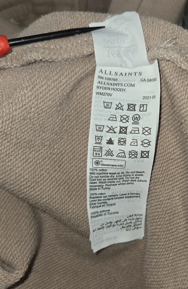Allsaints Ryder Hoody Hoodie Sweatshirt Womens Size Small Brown Beige Please feel free to ask any questions you may have. Thank you for looking. *** There are 2 small hole on the corners of the pocket . I have attached a photo of this.