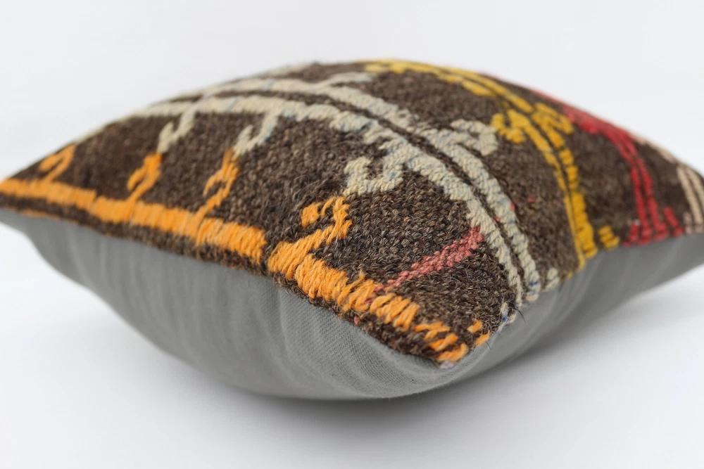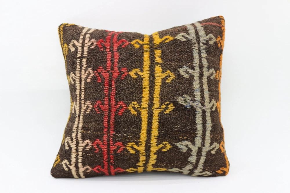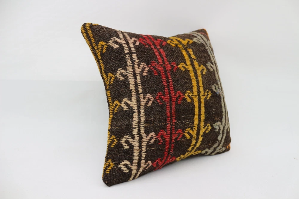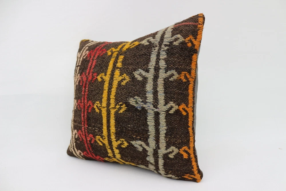 Almohada turca Kilim, almohada para decoración del hogar, estuche cojín marrón de 16""x16