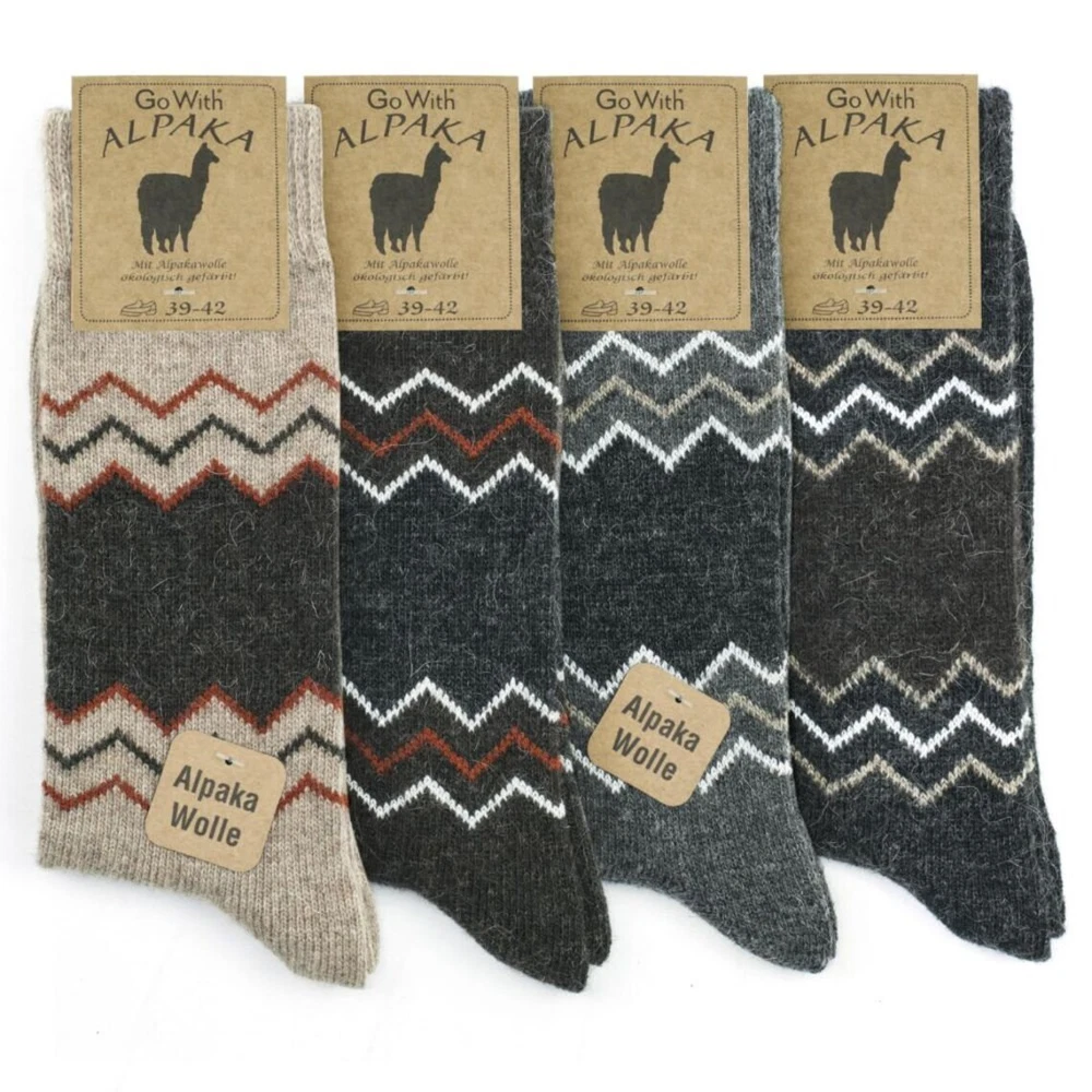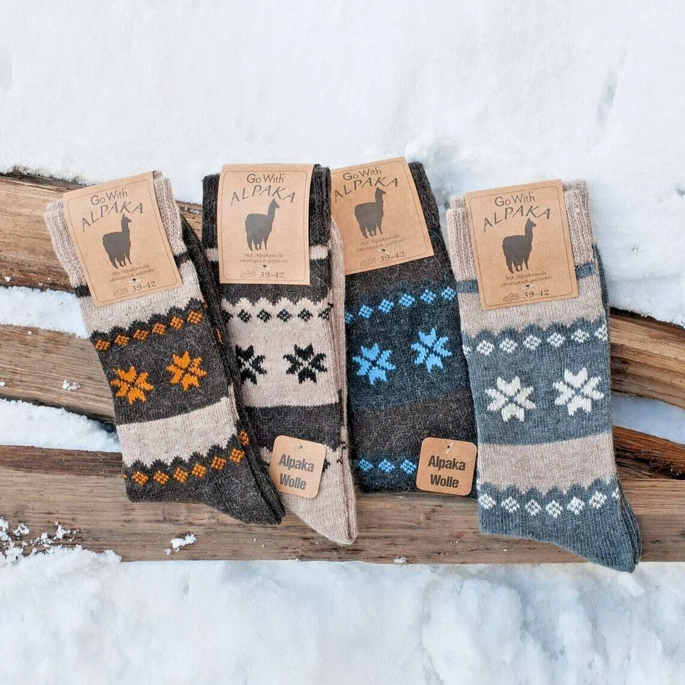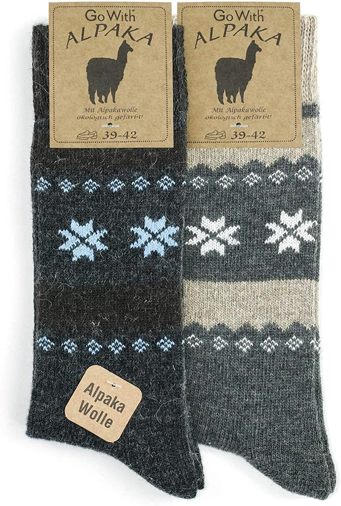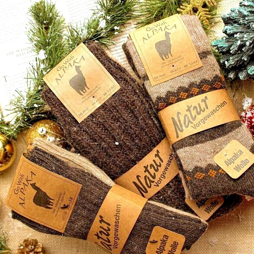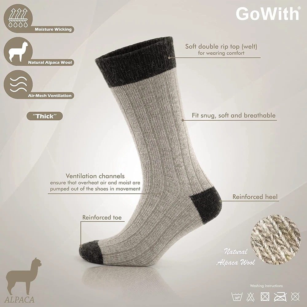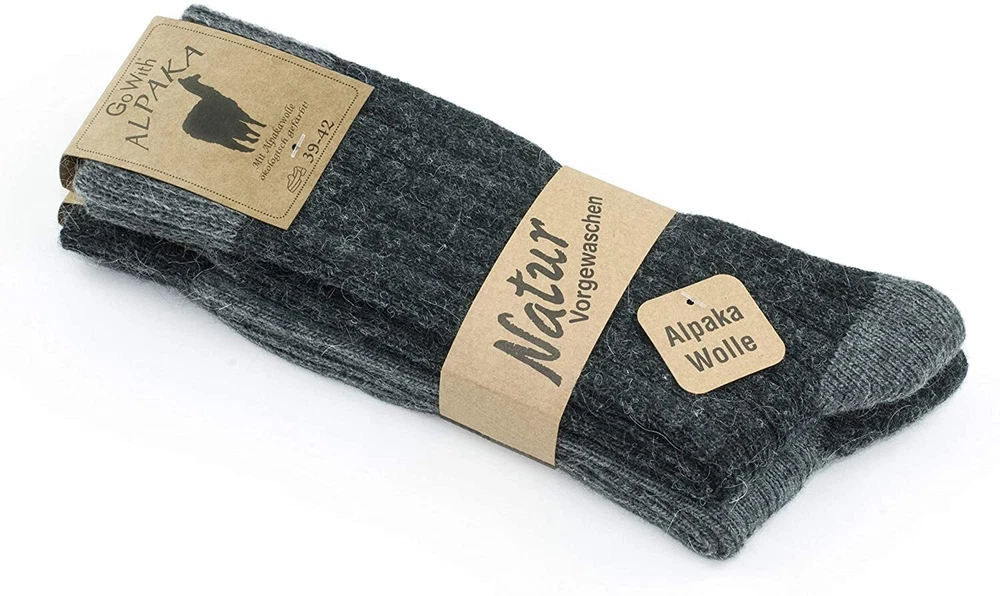 GoWith Original & True Alpaca Socks Premium Material: Alpaca camel wool is very durable thanks to its long fiber structure. Our winter alpaca socks for men and women for cold weather are made from non-itching hypoallergenic alpaca fibers. These Thick Knitted unisex wool crew socks are lightweight while still offering superior durability. Natural Moisture Wicking Socks. Our socks have Oeko-Tex® Standard 100 certification and has been tested for harmful substances and manufactured using sustainable processes under environmentally friendly and socially responsible working conditions and therefore %100 skin-friendly and allergy-free. Material(Imported): %40 Alpaca Wool %45 Sheep's Wool %12 Polyamide %3 Elastane Designed in Germany and made in Turkey. (we are often imitated but never duplicated) Available Sizes; US 5 - 8 (W) or (U) EU 35-38 US 7.5 - 9.5 (M) or (U) EU 39-42 US 10 - 12 (M) or (U) EU 43-46 NOTE FOR SIZE: (W) denotes the women and (M) for the men shoe size while (U) shows the unisex size.