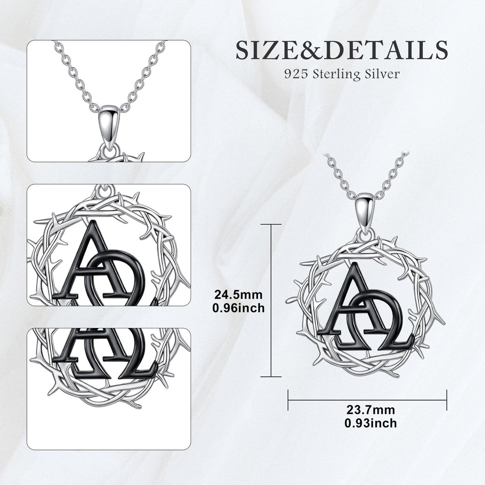 Alpha Omega Necklace 925 Sterling Silver Thorn Pendant Christian Symbols Jewelry Gifts for Women Men Necklace Design: Alpha represents the beginning and starting point, while Omega represents the end and finality. This necklace symbolizes the integrity and totality of everything, representing the infinite and eternal nature of all things. Product material: The alpha omega necklace are made of 925 pure silver, which has a good polishing effect, is not easy to change color or lose luster, has low allergenicity, and is suitable for long-term wear. About Size: The thorn pendant pendant size is 0.93*0.96 inches(23.7*24.5 mm) equipped with a 18+2-inch adjustable chain. Ideal Gift: This christian symbols jewelry is carefully packaged in a branded gift box and is perfect as a gift for friends, lover, and more. It can also be a perfect gift for birthdays, anniversaries, Christmas, New Year, and more! Customer Service: We are committed to providing you with satisfactory service. If you have any questions, please feel free to contact us and we will reply within 24 hours.
