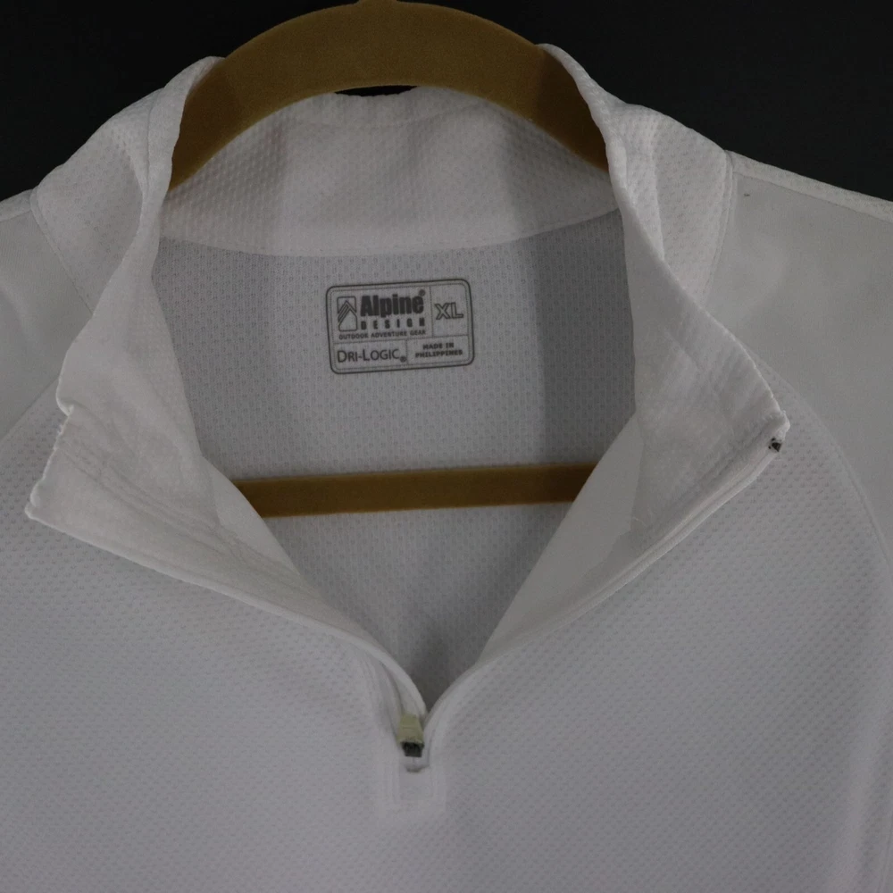 Step into your workout looking like a snowflake ninja with this Alpine Design pullover. With its moisture-wicking powers, you'll stay drier than a desert at noon. Perfect for those times when you want to say, “I’m ready for action and I’m very serious about it.” • Long sleeves • Quarter zip closure • Lightweight, breathable fabric • Dri-Logic technology • Designed for outdoor activities Features: active, golf, pickleball, outdoor, performance, gym, workout, athleisure, minimalist, clean girl, layering, warm, sporty Size: Womens XL Condition: Pre-Owned Like New Excellent pre-owned condition with no flaws. See photos for more details.