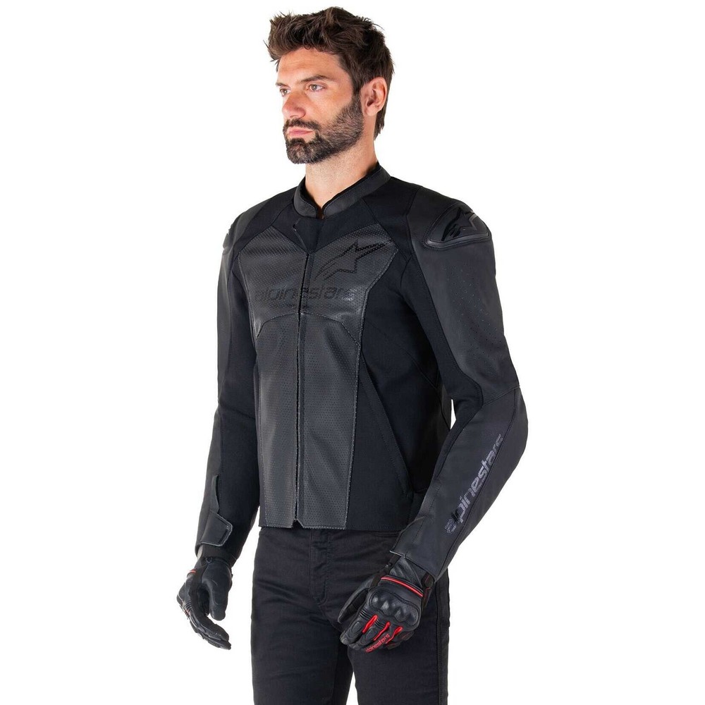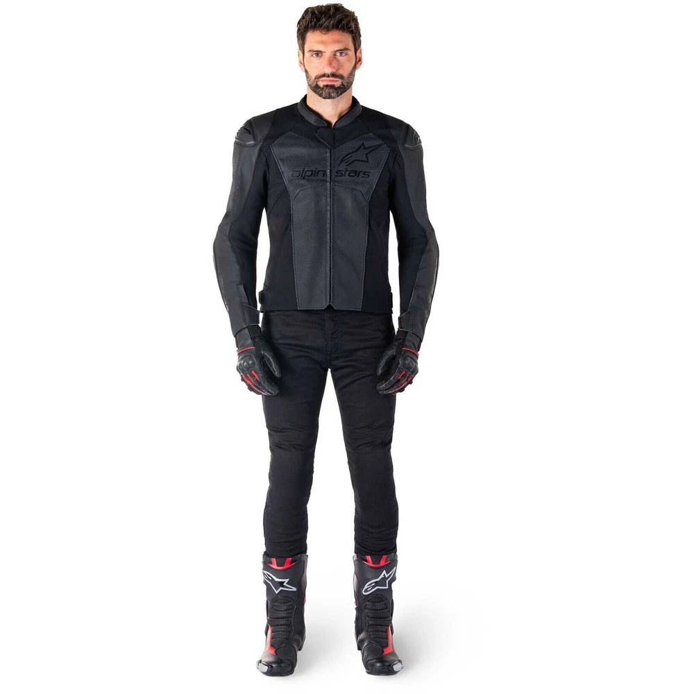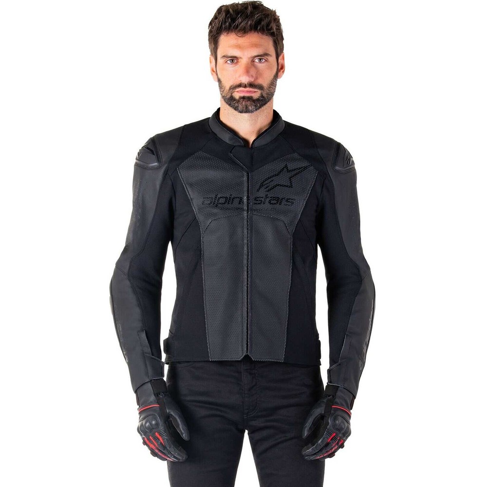 Alpinestars Faster V3 Airflow Leather Motorcycle Jacket - Black/Black 31036251100