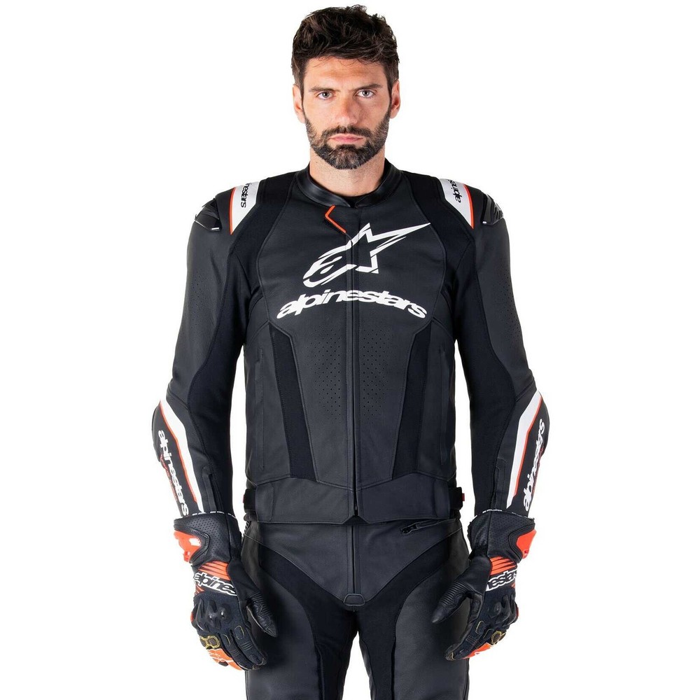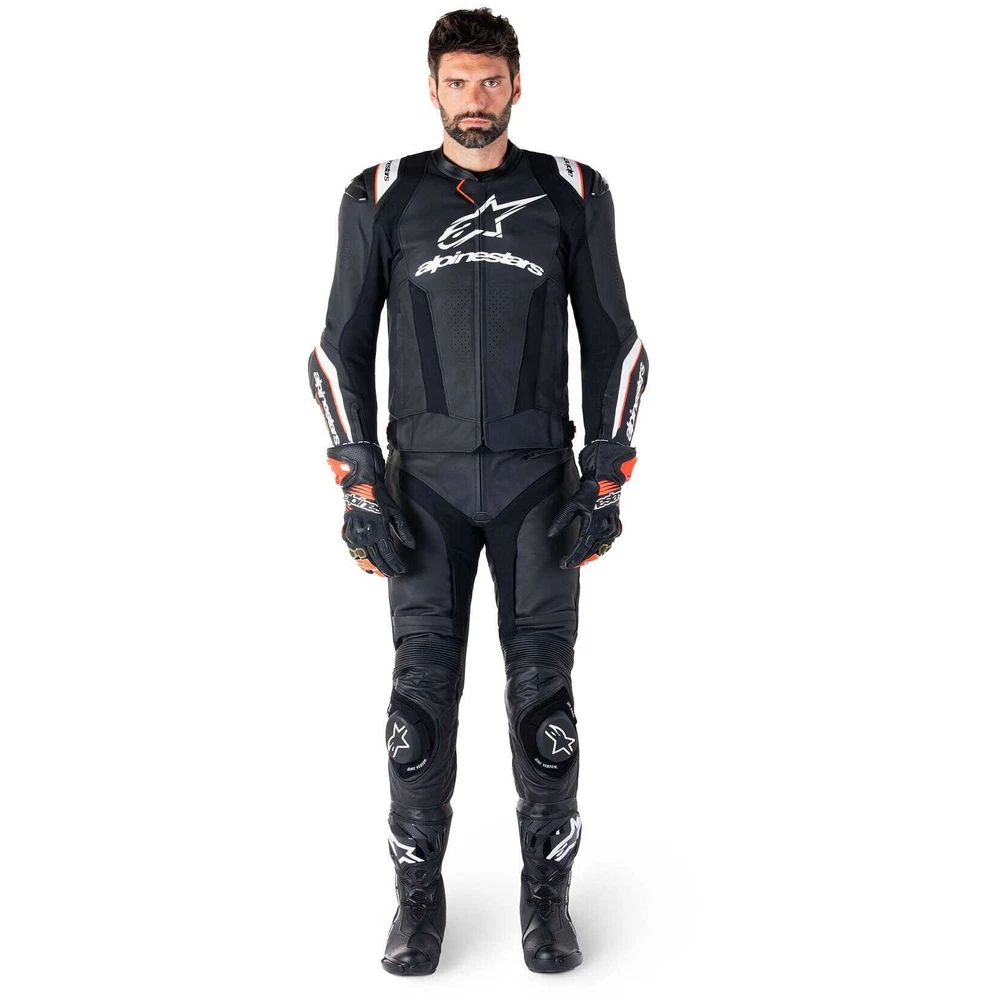 Alpinestars V3 Missile Leather Motorcycle Jacket - Black/White/Neon Red 31001251231