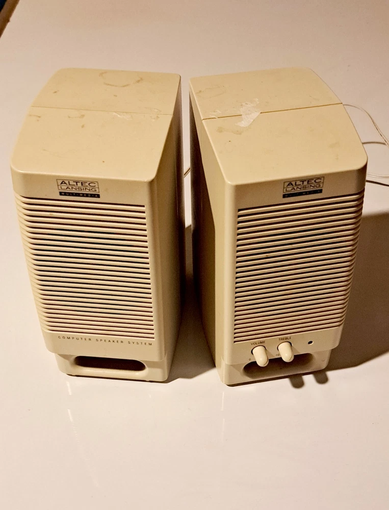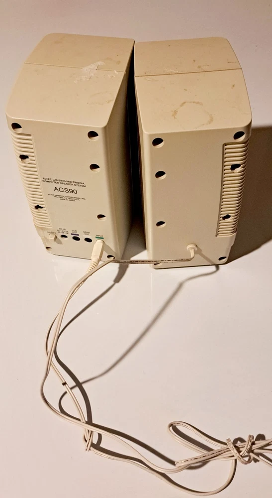 Elevate your computing experience with the Altec Lansing ACS90 Desktop Computer Speakers. These speakers deliver rich, detailed audio with a 2.0 channel system configuration and a RMS power output of 5W, ensuring that your music, movies, and games sound their best. The speakers feature AUX audio inputs, allowing you to connect your devices easily. Designed with a beige color, these speakers have a compact design measuring 5”x7”x3” without the power adaptor. The Altec Lansing ACS90 Desktop Computer Speakers are a great addition to your workspace, providing you with an immersive audio experience.