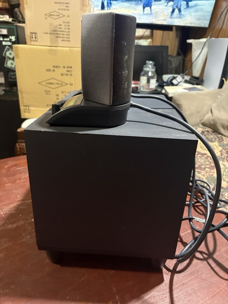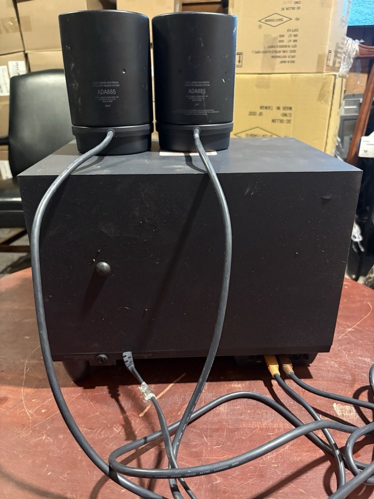 The Altec Lansing ADA885 Multimedia Computer Speaker System is a high-quality speaker set designed for use with computers. With a powered subwoofer included, this system delivers rich and powerful sound for an immersive listening experience. Its wired connectivity ensures easy setup and reliable performance. Perfect for enhancing your computer's audio output, this speaker system is a great addition to any desktop or laptop setup.