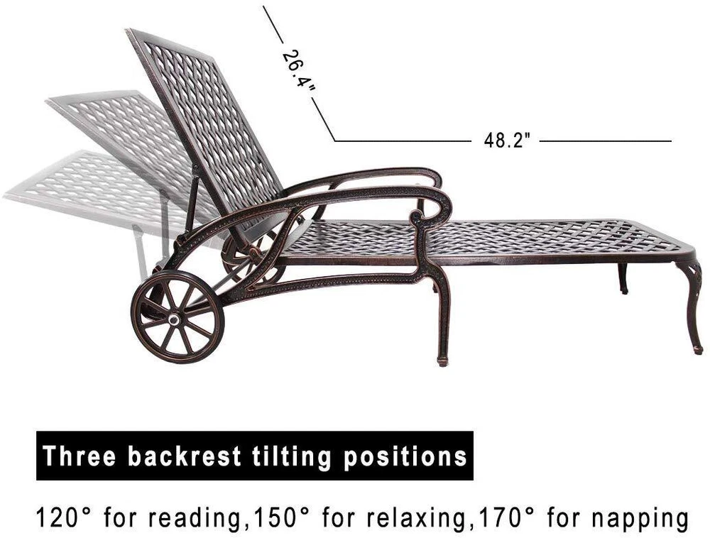Durable Material Rust-resistant and waterproof bronze finish coating that years to enjoy without corrosion damage Adjustable Backrest 5 adjustable position can meet the needs of various postures during your leisure time Rolling Wheels The two back wheels make this outdoor furniture easy to move around outdoors like your backyard, patio, poolside. Adjustable foot pads fit for uneven ground Cross Weave Solid cross weave construction hollowed out with elegant and graceful hardened antique bronze powder coating in details for all-weather Adjustable Reclining Rust-Resistant Aluminum Cast Poolside Chaise Lounge Furniture Color Bronze Product Dimensions 24'' W x 45'' D x 36'' H Special Feature Wheel Recommended Uses For P... NANHG8osa Your best online business partner Aluminium Cast lounge chair 1pcs brown Durable Material Rust-resistant and waterproof bronze finish coating that years to enjoy without corrosion damage Adjustable Backrest 5 adjustable position can meet the needs of various postures during your leisure time Rolling Wheels The two back wheels make this outdoor furniture easy to move around outdoors like your backyard, patio, poolside. Adjustable foot pads fit for uneven ground Cross Weave Solid cross weave construction hollowed out with elegant and graceful hardened antique bronze powder coating in details for all-weather Adjustable Reclining Rust-Resistant Aluminum Cast Poolside Chaise Lounge Furniture Color Bronze Product Dimensions 24'' W x 45'' D x 36'' H Special Feature Wheel Recommended Uses For Product outdoor , including garden, yard, pool Frame Material Alumimium Fabric 200g polyester Unit Count 1 Count Maximum Weight Recommendation 300Pounds Carton size 1set: 51.57'' W x 25.59'' D x 10.24'' H Item Weight 57.32 Pounds Country of Origin China Reclining Function: three backrest tilting positions to select, 120° for reading, 150°for relaxing and 180° for napping Reliable Design: sturdy structure for better durability and weight capacity; wheels for improved mobility; wide-leg stance with adjustable foot pads Weather Proof: easy to care for with protective coating, UV and rust resistance; years to enjoy without corrosion damage Elegant Choice: cross weave design; cast aluminium frame with zero air pollution coating, odor-free.Assembly is required Item Specifics Brand Unbranded Type Patio & Garden Furniture Sets Material Aluminium Payment If you do not have a PayPal account, to get started and buy your first item with us is very easy. Simply click on the 'Buy It Now' button and follow the eBay checkout steps. Select PayPal as the payment method you then will be given the chance to enter your card details in to PayPal's secure checkout in order to pay for your order. Shipping We will deliver the goods within 1-2 days after receiving the order We use a variety of transportation methods to ensure the fastest delivery of products Returns If an unit is received defective, of course we take it back or replace it. If the unit is received as expected, we must charge for our expenses if you want to send it back. We have to charge for the work of handling, retesting and restocking. Contact Us Dear buyer, Thank you for visiting my store! Our warehouses are located in many regions around the United States. According to the customer's delivery address. Use USPS/UPS/DHL logistics transportation service. Prioritize the best quality logistics solutions to transport packages. Ensure package delivery time, At the same time. Have any after-sales problems, Feel free to contact us. At your service NANHG8osa Your best online business partner DESCRIPTION PAYMENT SHIPPING RETURN POLICY CONTACT US Aluminium Cast lounge chair 1pcs brown Durable Material Rust-resistant and waterproof bronze finish coating that years to enjoy without corrosion damage Adjustable Backrest 5 adjustable position can meet the needs of various postures during your leisure time Rolling Wheels The two back wheels make this outdoor furniture easy to move around outdoors like your backyard, patio, poolside. Adjustable foot pads fit for uneven ground Cross Weave Solid cross weave construction hollowed out with elegant and graceful hardened antique bronze powder coating in details for all-weather Adjustable Reclining Rust-Resistant Aluminum Cast Poolside Chaise Lounge Furniture Color Bronze Product Dimensions 24'' W x 45'' D x 36'' H Special Feature Wheel Recommended Uses For Product outdoor , including garden, yard, pool Frame Material Alumimium Fabric 200g polyester Unit Count 1 Count Maximum Weight Recommendation 300Pounds Carton size 1set: 51.57'' W x 25.59'' D x 10.24'' H Item Weight 57.32 Pounds Country of Origin China Reclining Function: three backrest tilting positions to select, 120° for reading, 150°for relaxing and 180° for napping Reliable Design: sturdy structure for better durability and weight capacity; wheels for improved mobility; wide-leg stance with adjustable foot pads Weather Proof: easy to care for with protective coating, UV and rust resistance; years to enjoy without corrosion damage Elegant Choice: cross weave design; cast aluminium frame with zero air pollution coating, odor-free.Assembly is required Item Specifics Brand : Unbranded Type : Patio & Garden Furniture Sets Material : Aluminium Payment If you do not have a PayPal account, to get started and buy your first item with us is very easy. Simply click on the 'Buy It Now' button and follow the eBay checkout steps. Select PayPal as the payment method you then will be given the chance to enter your card details in to PayPal's secure checkout in order to pay for your order. Shipping We will deliver the goods within 1-2 days after receiving the order We use a variety of transportation methods to ensure the fastest delivery of products Returns If an unit is received defective, of course we take it back or replace it. If the unit is received as expected, we must charge for our expenses if you want to send it back. We have to charge for the work of handl