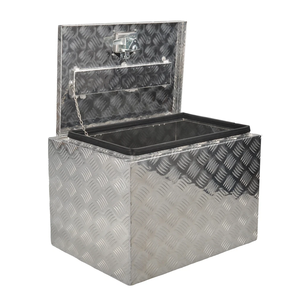 Description: · 100% Brand new,never been used · 24"(L) x 17"(W) x 18"(H) Overall Size · 5 Bar Tread Pattern Strengthens the Aluminum for Maximum Durability · Box Conveniently Mounts in Vehicles Truck Bed for Space Saving Storage · Over-Hanging Lip Resists Water from Getting Inside, Providing Ease of Mind in any Weather Condition · Fold up Door Provides Full Access to the Box · Built-in Lock Ensures all Items are kept Safe and Secure · Perfect for storing your Tools in your Vehicle or at Home · No instruction included Sp ecifications: · Material: Aluminum · Product Dimensions: (24 x 17 x 18)(L x W x H) · Tread: 5 Bar Tread · Weight: 17lbs / 8kg · Position: Truck Bed, Underbody · Color: Silver Package Includes: · 1 x Aluminum Tool Box · 2 x Keys · As the picture show Fitment: Universal This toolbox is versatile and can be used in trucks, RVs, ATVs, trailers, garages, job sites, flatbeds, camper hook racks, luggage racks, pickup trucks, or dump trucks. Shpping: Recommendations to International Buyers: Import duties, taxes and charges are not included in the item price or shipping charges,they are responsible by buyers. All orders with its payment cleared will be shipped within 2 work days.please advise your phisical address and phone NO.. Shipping carriers will be different depends on special needs,if you have special request,please contact us. Tracking numbers will be updated on eBay as soon as they are created and processed All order will shipped out from our USA warehouse for USA buyer. Delivery time is 3-10 Business days. No shipping on weekends and holidays. Return: Please contact us before return your item,we will send you correct return address. All returns must be packed securely for shipping and the tracking number must be provided via your eBay return request or message. Any lost or damage during shipping back are covered by buyer. Contact US: Please take photos immediately if you find the package or item damaged. The best way to contact us is by eBay messages. We always reply eBay messages that are sent to us with an inquiry, usually within 24 hours of receipt or sooner. Although we are trying our best , there could be small issues like wrong or defective item sent or damaged during transit or item not as described. Please do not hesitate to contact us and we will work with you for a reasonable solution.