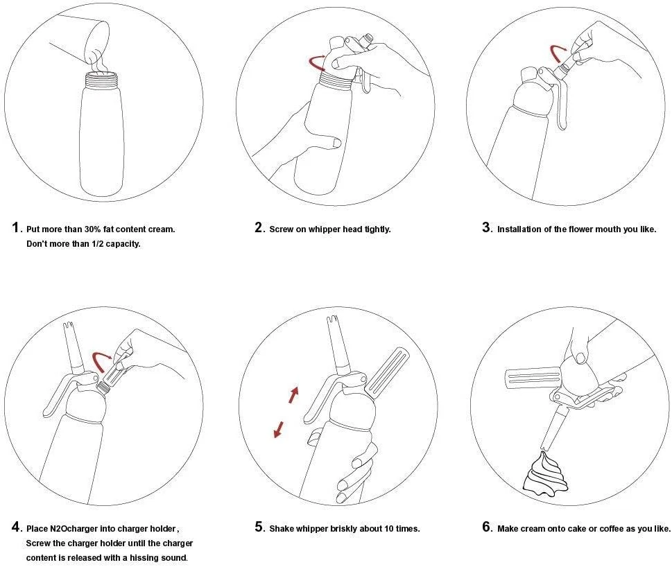 Store New Arrivals Add to Favorite View Feedback Contact Manual Whipped Cream Dispenser Aluminum 500ML/1 Pint Cream Whipper Fancy Desserts Maker Homemade Gourmet Whip Culinary- Compatible 8-Gram Whip Cream Chargers (Not Included) Description Style Aluminum Cream whipper Head Material Aluminium Color Aluminum-sliver Is Dishwasher Safe Yes Item Weight 1.7 pounds Is Discontinued By Manufacturer No Product Dimensions 3.54"L x 3.54"W Multi-use and Practical Occasions--Amazed your family,friends or customers with stinfully a delicious mousses,toppings and treats in a flash with our cream whipper.Home cooks and professional chefs can top off ice cream sundaes or make rich chocolate and savory mousses, coconut whipped cream, soups, sauces, foams, frothed lattes, and nitro coffee. High-quality Construction--Feels like it's restaurant quality instead of consumer grade.The cartridge holder is sturdy.Aluminum food grade material body and head are durable and light weight and developed with safety in mind.with 3 Decorating Plastic Nozzles, whipped cream chargers Holder cartridges(we send nozzles' cleaning brush) Easy to assemble Easy To Operate Easy To Clean--Cream whipper nozzle with the included scrub brush Use for home kitchen,party,or cooking class as gifts. You can clean whipper easily. More Health--You can get most fresh cream by your hand with Sivaphe whippped cream dispenser at any time. And you can control the calories to be healthy. Instructions for use step by step]: Ensure the safety. The pamphlet in the box gives the notes tips and pls read the instructions for use. 500 ml whipped cream dispenser compatible with all brands of 8-gram cartridges. Product Description Do you spent time and money for delicious dessert with ice cream? Do you also trouble how to make delicious homemade chocolate mousse pie with whipped cream? Now it is time to change! Simply, you just need one Sivaphe whipped cream dispenser! More Health: You can get most fresh food by your hand with this cream whipper at any time. And you can control the calories to be healthy. FRIENDLY NOTE: Gifted 3 whipped cream decoration notes , more convenience, more choose, more fantistic Compatible with standard 7.5-8gram N2O cartridge (not included), Do not use CO2 cartridges with whipped cream as it will make the cream mix sour Supply for : Ice cream /Fruit cream Beautiful Desserts Vanilla Yogurt cream Yummy coffee drinks Milk shakes And Other your favorite foods ! ABOUT OUR SIVAPHE Better drinking ware, better life! Our Sivaphe supply: French Press Expresso moka pot Ice Cold Coffee Maker Whip Cream Dispenser Glass Tumblers & Mug Stainless steel Tumblers & Mugs Water Bottles Whipped Cream Dispenser instructions are easy to follow, help you create great whip cream in just minutes. How to use: Put more than 30% fat content cream. Don't more than Max line capacity Screw on whipper head tightly Place N2Ocharger into charger holder Screw the charger holder until the charger content is released with a hissing sound Shake whipper briskly about 10 times or more Make cream onto cake or coffee as you like Use CO2 cartridges ONLY when using the dispenser as a soda siphon for carbonating beverages or acidic sauces, but NOT with cream. Best gifts for the homemade lover. Brewing method for Dessert shop and Fancy drinking shop. MATERIAL QUALITY DURABILITY, DECORATION TIPS GIFTED Easy to Assemble Wide mouth Easy to Add Aluminum Quality and Durability Body WHIP CREAM DISPENSER PARTS Packed with 1-Pint Aluminum Dispenser / 3 Plastic Decorating Tips / Cleaning Brush / N2O Cartridge / N2O Valve Cover WHIP CREAM DECORATION TIPS Three decorative tips included to make your creations extra impressive. Spare N2O charger holder and silicone gasket included. WHIP CREAM SIPHION Give you a variety of options for decorating your pies, cakes, and waffles; Your homemade desserts and savory dishes will look as beautiful as they taste. ABOUT US We offer the best prices around on high quality products. Our E-store includes media such as books, movies, music and games while offering electronics, toys, sporting apparel, clothing, tools, general home, garden items and more. SHIPPING We are always working hard to ensure your package arrives as soon as possible. Please understand that some factors like weather, high postal traffic, and the performance of shipping companies are outside of our control. We offer free shipping to the lower 48 states and ship within 2 business days of payment, usually sooner. We do not accept P.O. Boxes. Please provide a physical address. For shipping outside of the continental USA, we only use eBay's Global Shipping Program.The item is shipped to KY and then sent to the rest of the world. International customers are responsible for all duties and taxes. Continue to check out in order to calculate costs for shipping the item to your country. Messages regarding eBay's Global Shipping Program MUST be directed at eBay EXCLUSIVELY. RETURNS We offer a 30-Day Return Policy on items which you are not completely satisfied with. You have the option for a full-refund or an exchange of the item. No returns are available on items shipped outside of the USA. PAYMENT We accept PayPal. CONTACT US This page content is yet to come Please ad us to your favorite seller and visit again later Thank You CUSTOMER SATISFACTION We try our very best to make sure every customer is completely satisfied. If there's a problem, message us! We're happy to help. WE ACCEPT Copyright © 2021 AutoDS. | All Rights Reserved