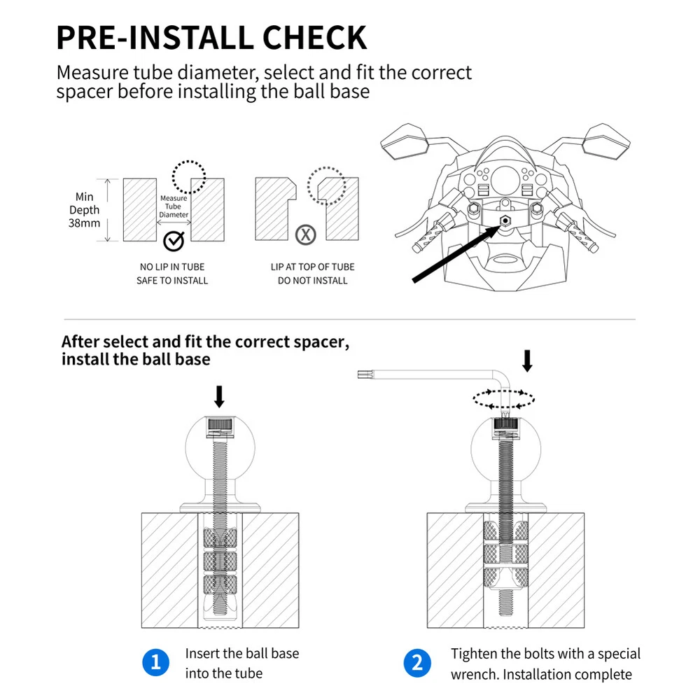 Store Home Promotion Hot Item Add to Fav Contact us Feedback New arrival travelstylespot^-^ Merry Christmas Home & Garden Crafts Clothing, Shoes, Accessories Baby Sporting Goods Jewellery & Watches Computers/Tablets & Networking Vehicle Parts & Accessories Health & Beauty Phones & Accessories Pet Supplies Industrial Toys, Hobbies Cameras Electronics Musical Instruments Video Games & Consoles Home Entertainment Home Appliances Business Collectables Dolls, Bears Prodcution Description : Ball Mount Adapter 17mm 25mm Motorcycle Fork Stem Mount Aluminum Alloy Front Fork Bar Ball Head Anti-theft Motorbike Accessories Feature: 1. Versatile Design: The black fork stem base design is suitable for cylindrical or hexagonal hole walls of motorcycle fork stems, making it compatible with a wide range of vehicles such as motorcycles, bicycles, scooters, SUV, and electric cars. 2. Two Size Options: The package includes two metal washers in two different sizes to fit tube holes ranging from 12mm to 25.4mm in diameter. You can select the appropriate washer size based on the diameter of your tube. 3. Simple Installation: The ball mount adapter is easy to install and comes with pre-installed screws that require no additional tools. Simply select and install the correct washer before mounting the ball base. 4. Anti-Theft Design: The screw head of the mobile phone holder has a specially designed screw slot, and it comes with a special wrench to tighten or loosen the bolt, providing extra security for devices connected to this mount. 5. Compatible with Various Devices: This motorcycle fork stem mount can be used as a phone holder base, sports camera mount, GPS mount, and more, increasing its versatility and practicality. Specification: Origin: Mainland China Material Type: Aluminum Alloy+ZincAlloy+TPU Model Name: Black Fork Stem Base Colour: black Type (optional): 17mm/25mm Applicable calibre:12-25.4mm Package size: 100 x 50 x 30mm/3.94 x 1.97 x 1.18inch Note: Due to the different monitor and light effect, the actual color of the item might be slightly different from the color showed on the pictures. Thank you! Please allow 1-2cm measuring deviation due to manual measurement. Included 1 x Front Fork Bar Ball Head 1 x Wrench Pictures PAYMENT DELIVERY WARRANTY PAYMENT We accept PayPal only. All major credit cards are accepted through secure payment processor PayPal. Payment must be received within 7 business days of auction closing. If you have bought multiple items from me, you can send me one payment for all the items instead of paying for them individually. When you click the Pay Now button, eBay will automatically determine if there are other items you have won or purchased from me and will combine them for your review. NOTE: Import duties, taxes and chargers are not included in the item price or shipping charges. These charges are the buyer's responsibility. Please check with your country's customs office to determine what these additional costs will be prior to bidding buying. DELIVERY 1. We Ship to Worldwide. 2. Items will be shipped within 2 business day on payment received. 3. Item are shipped from shenzhen using Airmail, reach most of the countries within 10 to 20. 4. Delivery time depends on destination and other factors, it may takes up to 20 business days. WARRANTY 12 months Warranty. Buy with confidence! If you are not satisfied when you receive your item, please return it within 14 days for a replacement or money back. Please contact me before you return it. If item is defective in 3 months, We will send you a replacement without extra charger, or offer refund after we receive the defective item. If item is defective after 3 months, you can still send it back to us. We will send you a new one after receiving the defective item. But you have to pay the extra shipping fee.